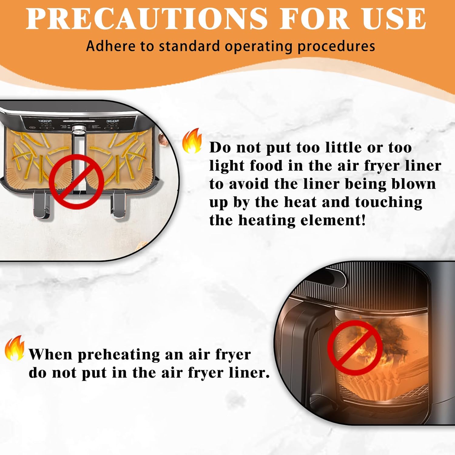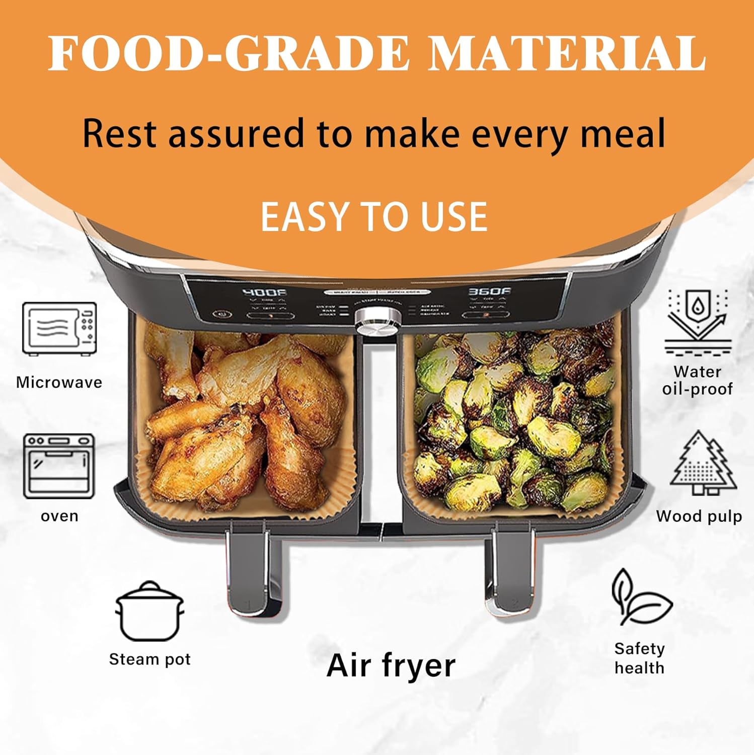 - 📐【Perfect size】The size of Air Fryer Liners are 5.5" x 8.6"x1.77".Perfect for your Ninja Air Fryer.Designed by air fryer liners, it can be used perfectly for Ninja Foodi Dual Air Fryer DZ201 8Qt, DZ401 10Qt, Instant pot 8-quart,9 Quart, PowerXL 10Qt, Chefman 9Qt.