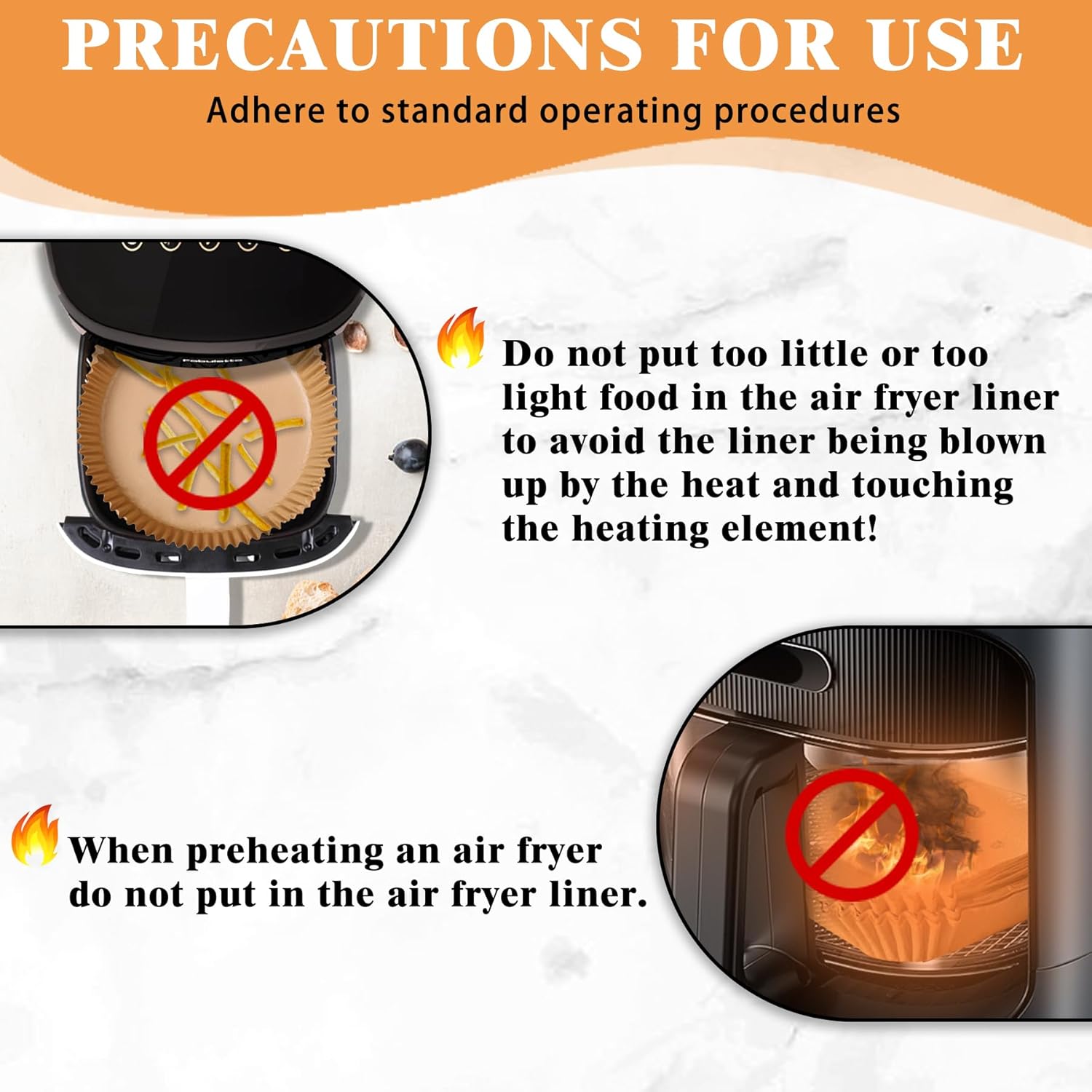 - 👍【Wide Usage】Air fryer liners are suitable for baking, frying, baking, steaming, frying, microwaving or holding food. You can use it to heat pizza, cook fish, chicken, vegetables or other foods. Great for camping, home baking, parties.