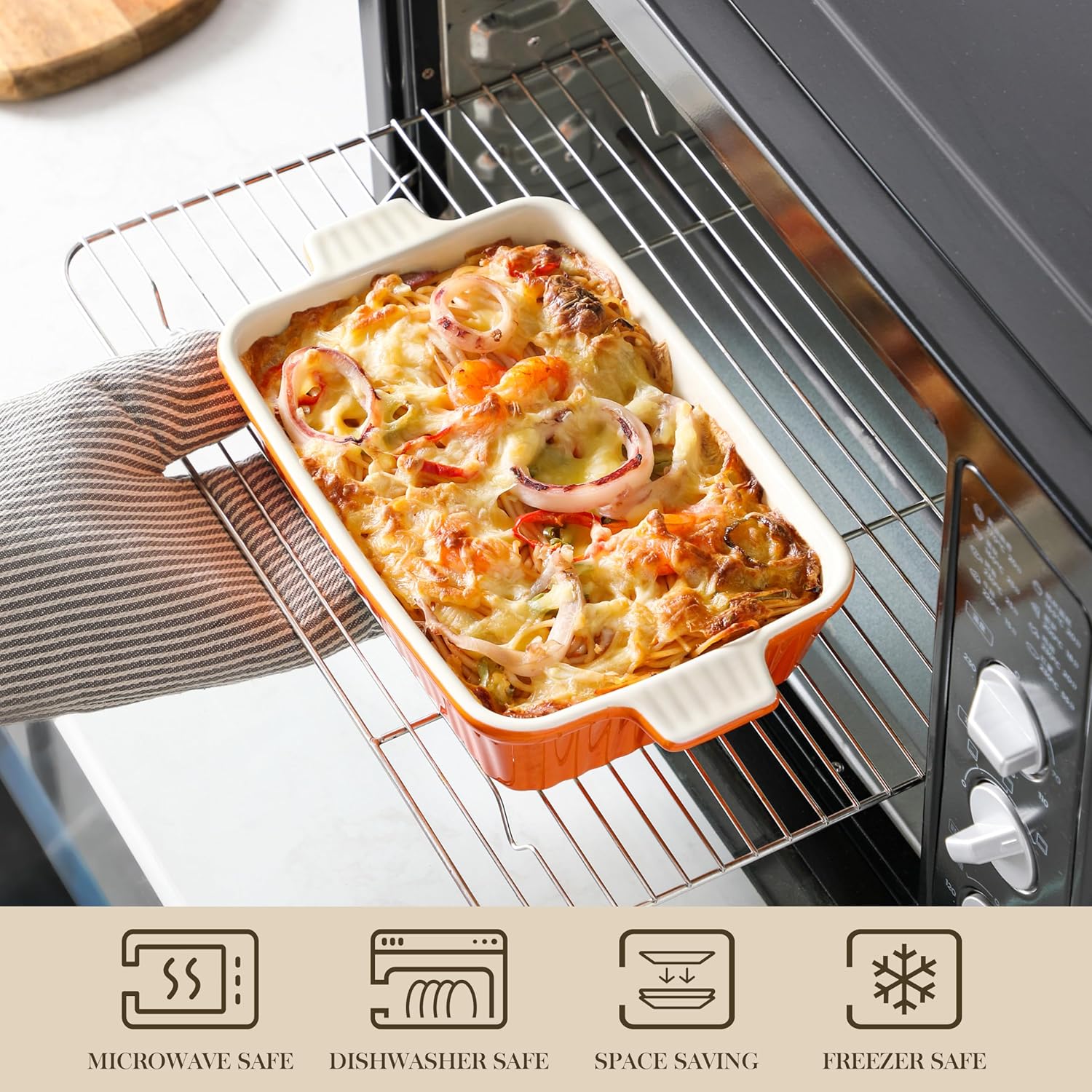 - 【EASY TO CLEAN & GIFTABLE】Interior and exterior glaze protect baking pans against stains, making them easy to clean by dishwasher or hand. This ceramic bakeware set is perfect as a gift for your friends and family on Housewarming, Birthday, Wedding parties, Mothers' Day, Fathers' Day, Christmas, and New Year's Day.