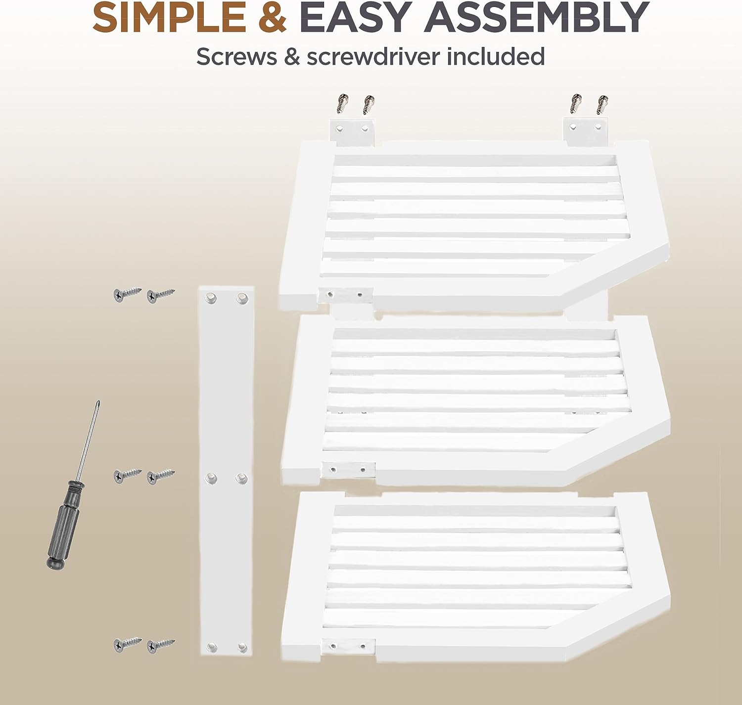 Cabinet Organizer Shelf - Bamboo Corner Rack for Kitchen Counter, Cabinet Space Saver for Plates, Dishes, Bowls, Bread Pantry, Bathroom Storage or Countertop Stand, White