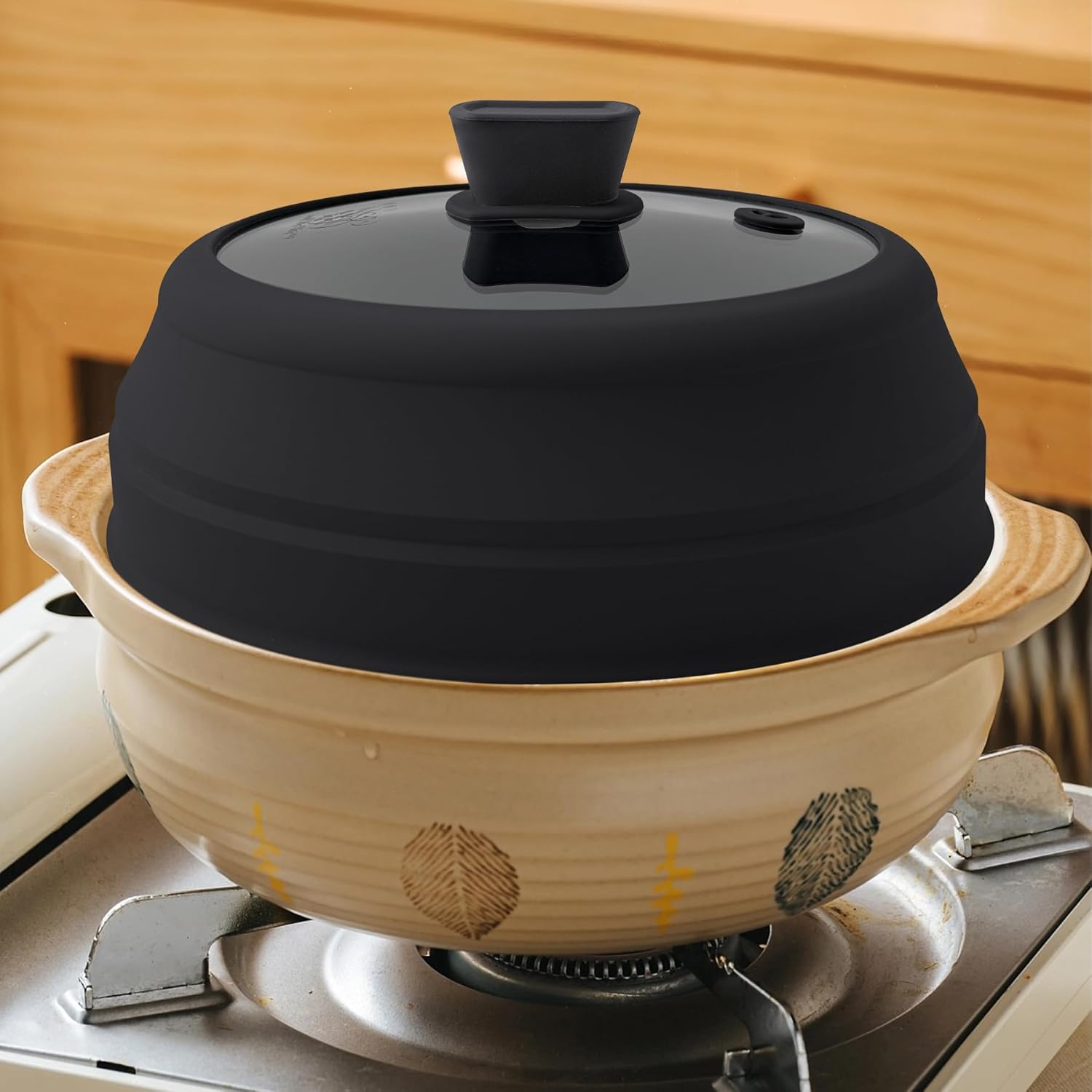 - Steam Vent Hole: The vent hole design on the glass top effectively releases steam during heating, preventing excess condensation inside the lid. This not only avoids water droplets falling back onto the food but also helps ensure more even cooking.