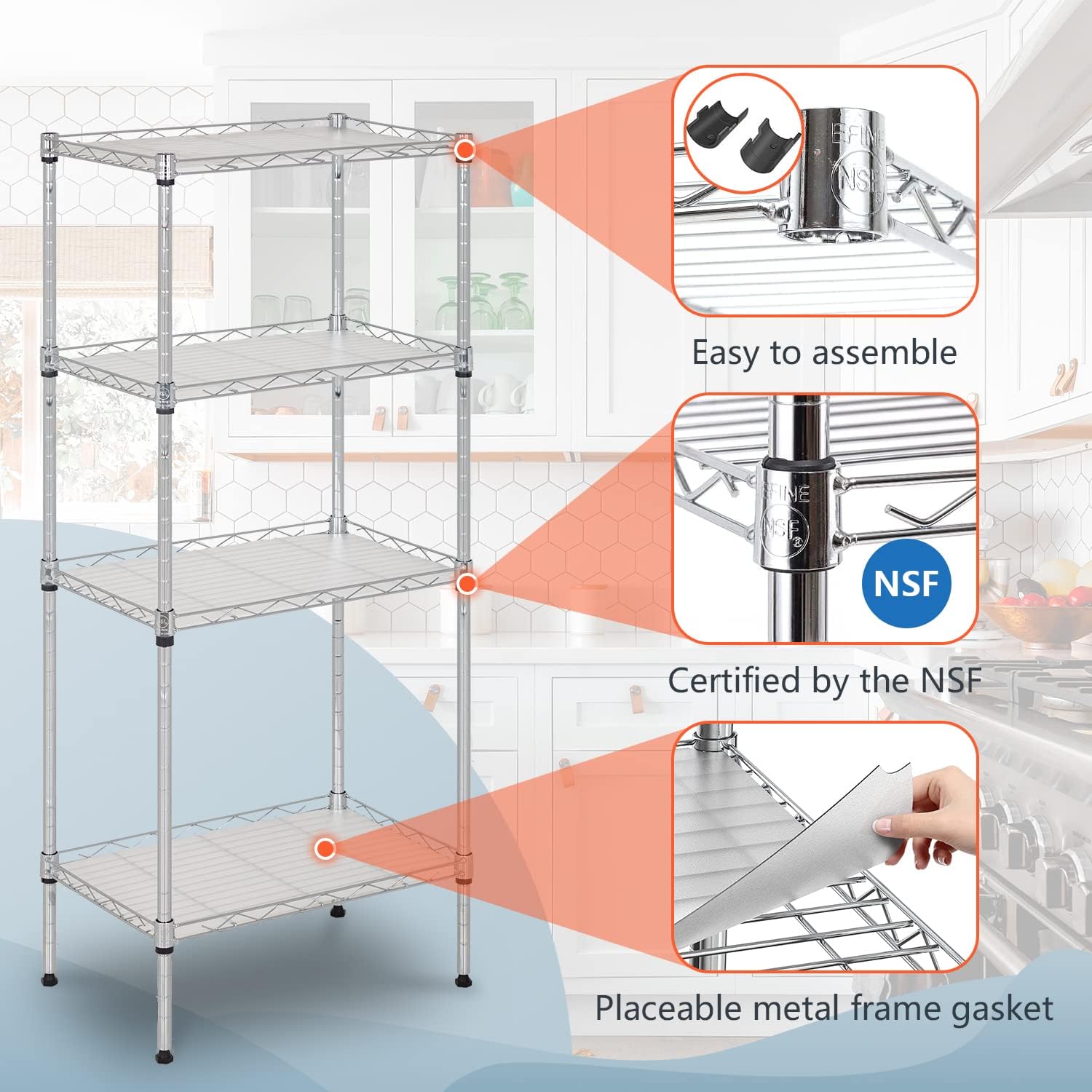 - ✔【EASY TO ASSEMBLE】: The shelves for storage is easy to assemble.This wire shelf structure is very simple. No tools required to assemble it.The wire shelving unit is simple to assemble,You only need to spend 15 min to install it.storage shelves wire shelf wire shelving unit.