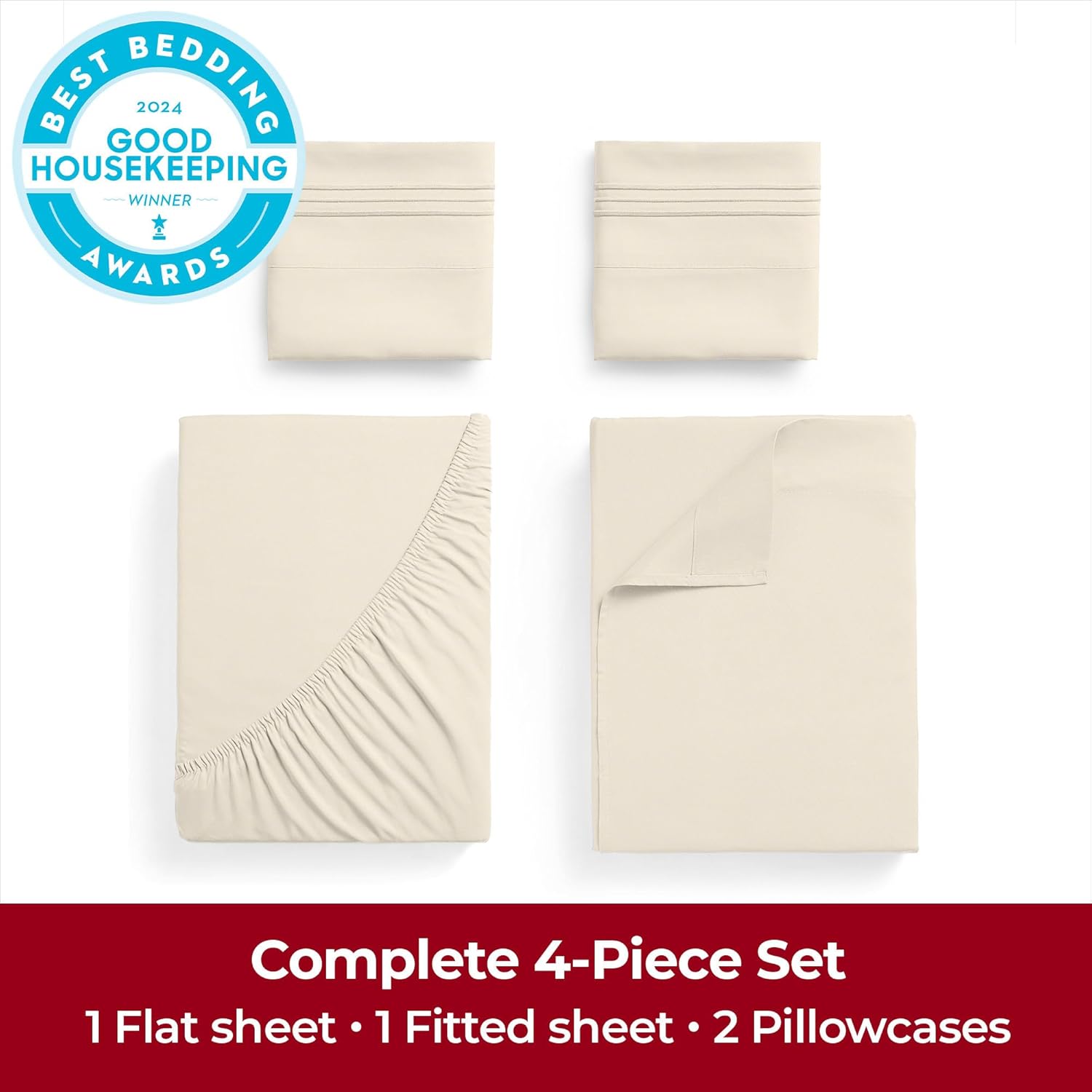 Mellanni Extra Deep California King Sheets - 4 PC Iconic Collection Bedding - Luxury, Ultra Soft, Cooling Bed Sheets - Wrinkle, Fade, Stain Resistant (Cal King, Golden Ivory)