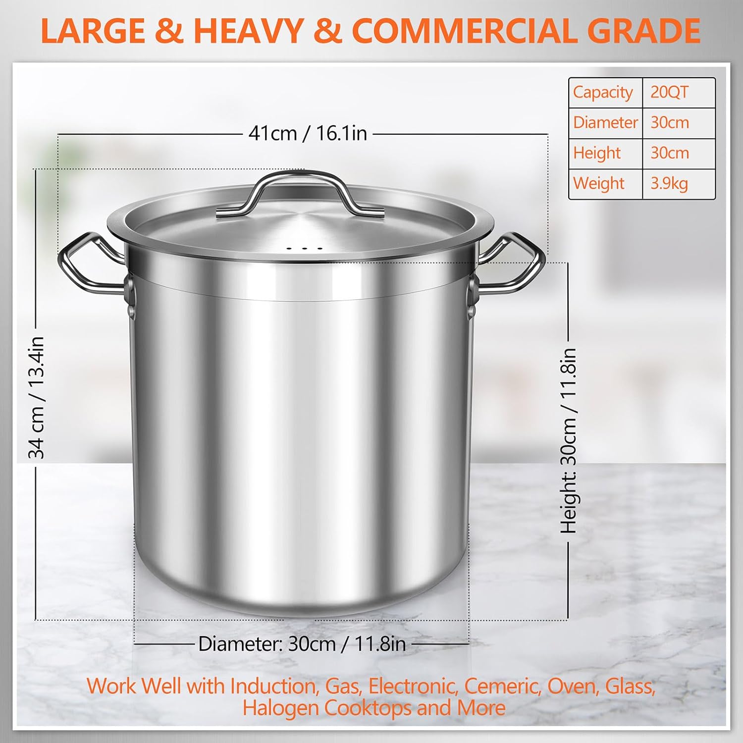 - ANTI-OVERFLOW, MORE SENSE OF SECURITY: The large stockpot is equipped with a sunken and tightly-fit stainless steel lid to prevents from soup overflowing. Compared to the instability of tempering glass, our stew pot gives you more security as it's oven safe up to 501°F. Three steam holes on the lid will retain and distribute heat evenly, release air pressure to prevent explosion while boiling and avoid scald when opening the lid.