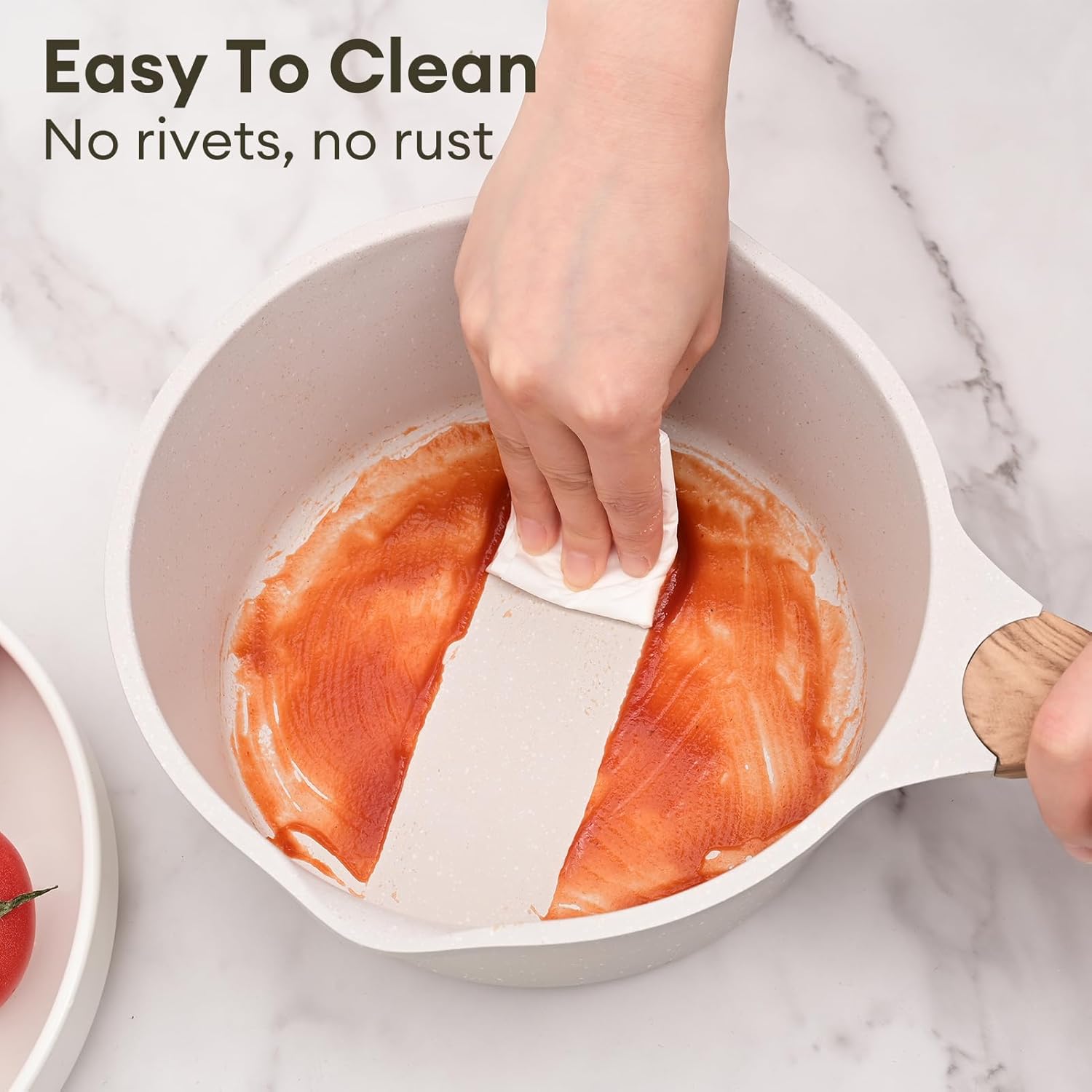 - [Ergonomically Designed Wooden Handle]-The Jeetee sauce pot has ergonomic woodgrain bakelite handle ,ergonomically designed so you can hold the handle comfortably meanwhile good heat resistance can prevent the handle from high temperature during cooking
