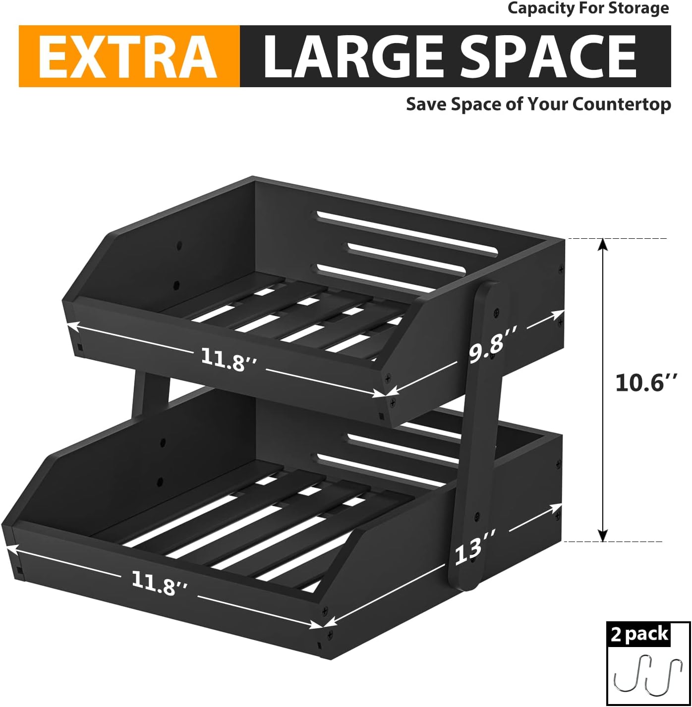 Bamboo Fruit Basket for Kitchen– 2 Tier Fruit Bowl For Kitchen Counter, Large Fruit Holder With 2 Banana Hangers, Idea For Fruit and Vegetable Storage, Bread Basket, Snack Organizer(BLACK)