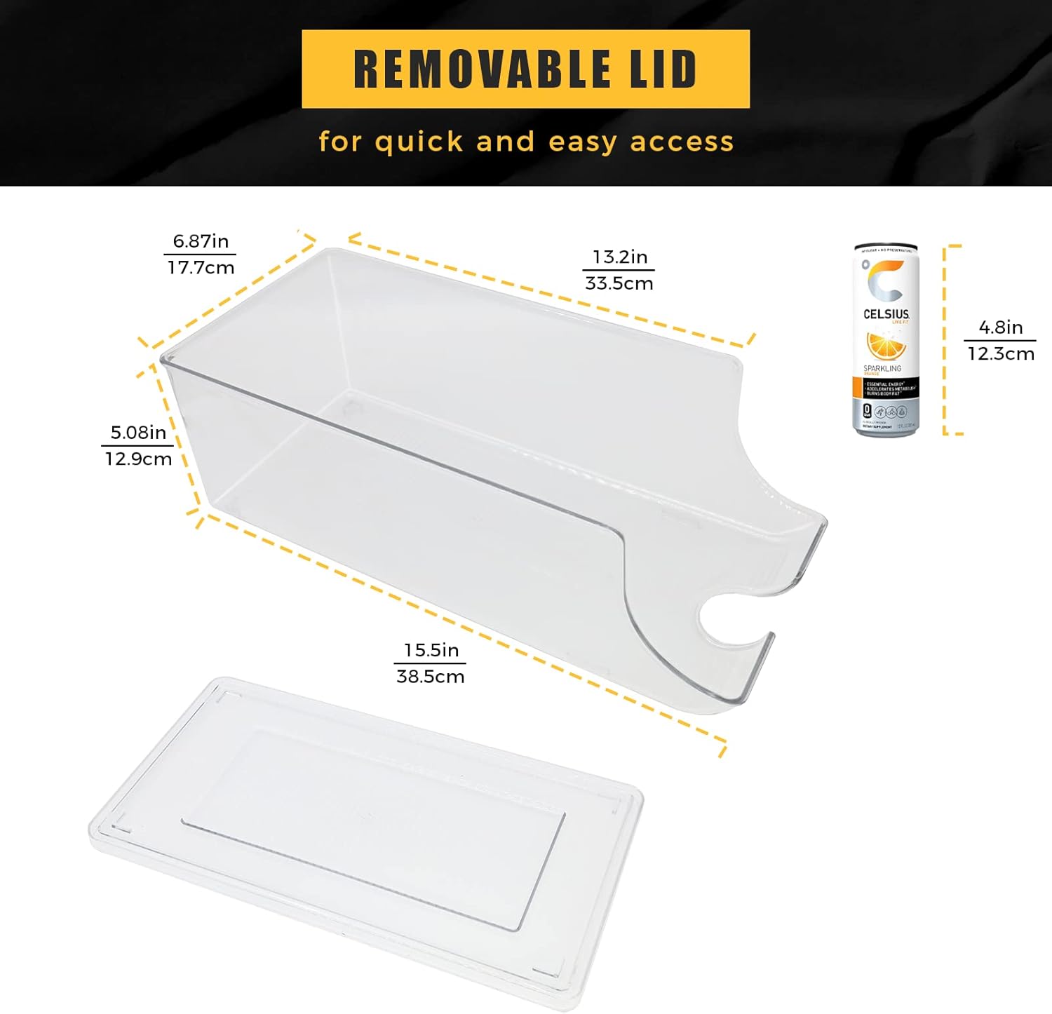 - Stackable & Space-Saving: Stackable bins with a sealed airtight lid keep cans fresh, protected from dust and odors, and prevent spills. The lid top also doubles as extra storage, maximizing refrigerator space