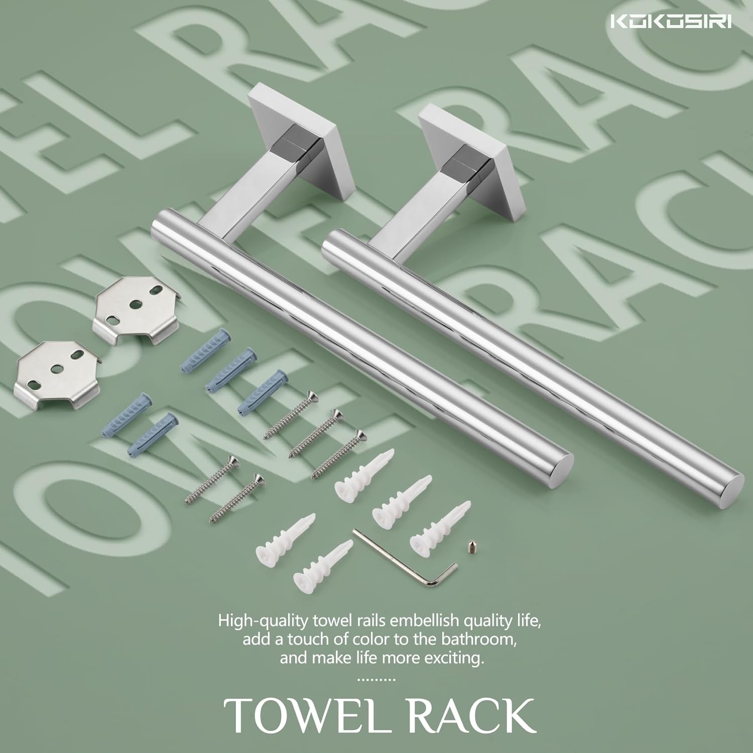 KOKOSIRI Bathroom Hand Towel Holder Rack Bathroom Hardware, Suitable for Wall Mounted Towel Bar Screw in 2 Pack, Polished Stainless Steel B3008CH-P2