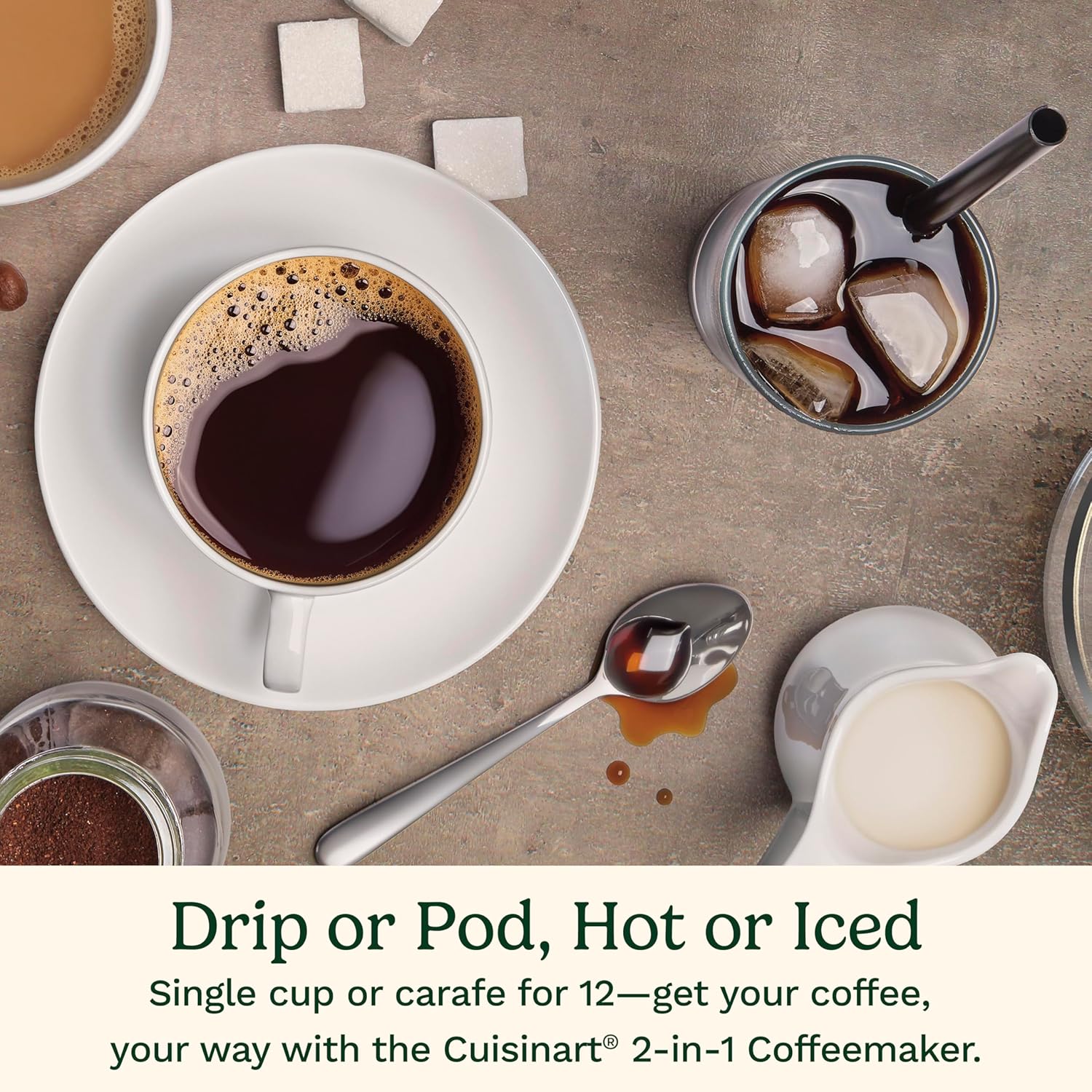 - SINGLE-SERVE: Enjoy five serving sizes β 4 ounces, 6 ounces, 8 ounces, 10 ounces or 12 ounces β compatible with any brand of single cup pod including Keurig K-Cup pods with an optional reusable filter cup so you can use your own coffee through our HomeBarista elite Cuisinart features - pour it over ice for a cool coffee treat.Filter type:Reusable
