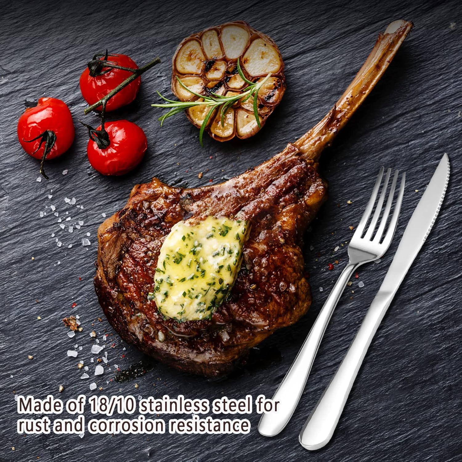 SANTUO 12 Pcs Silverware Set with 6 Steak Knives and 6 Dinner Forks,Flatware Set with Top Food Grade Stainless Steel,Tableware Cutlery Set For Home Restaurant Hotel, Mirror Finish, Dishwasher Safe