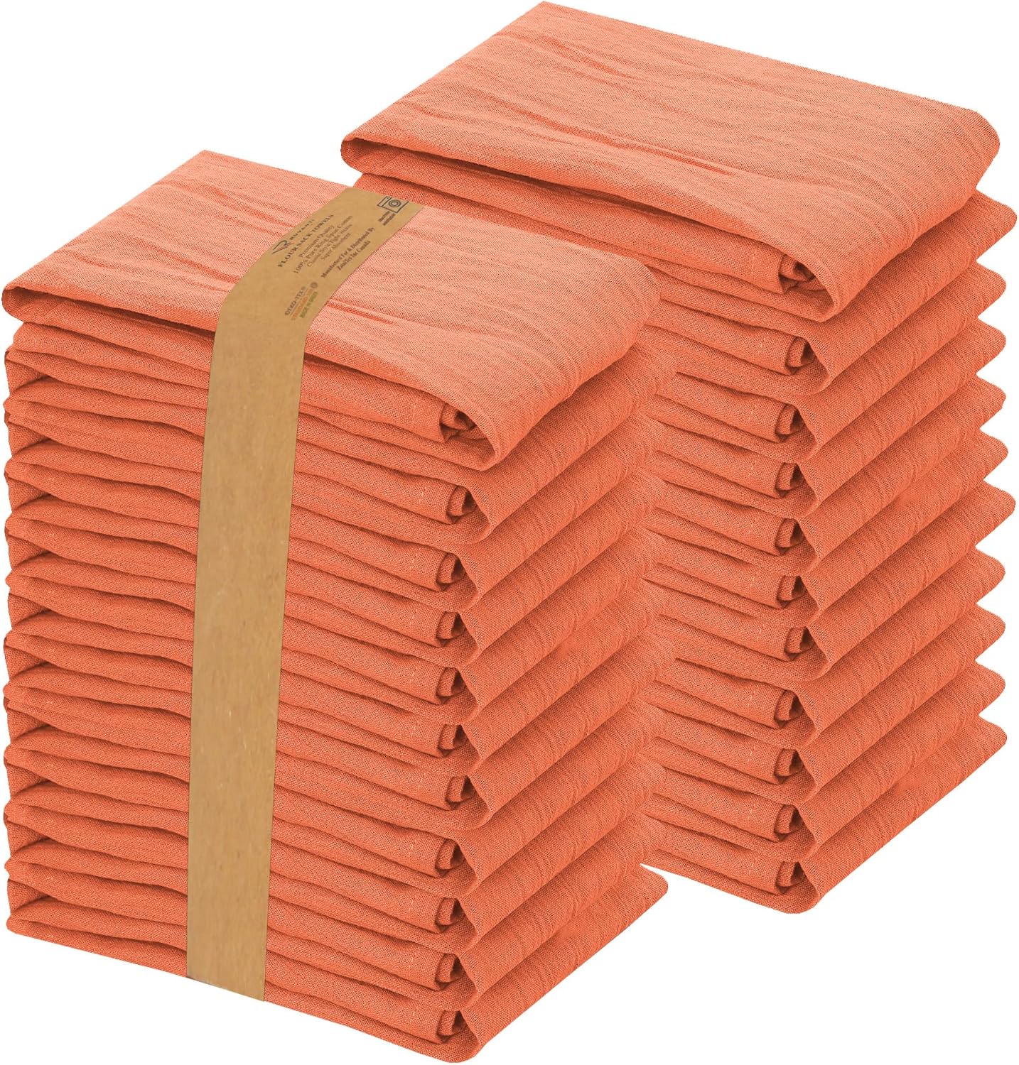 RUVANTI Flour Sack Towels 36 Pack 28x28 Inch, 100% Cotton Tea Towel, Reusable, Machine Washable, Absorbent BarTowels - Dish Cloth Perfect for Drying Dishes & Cleaning - Orange