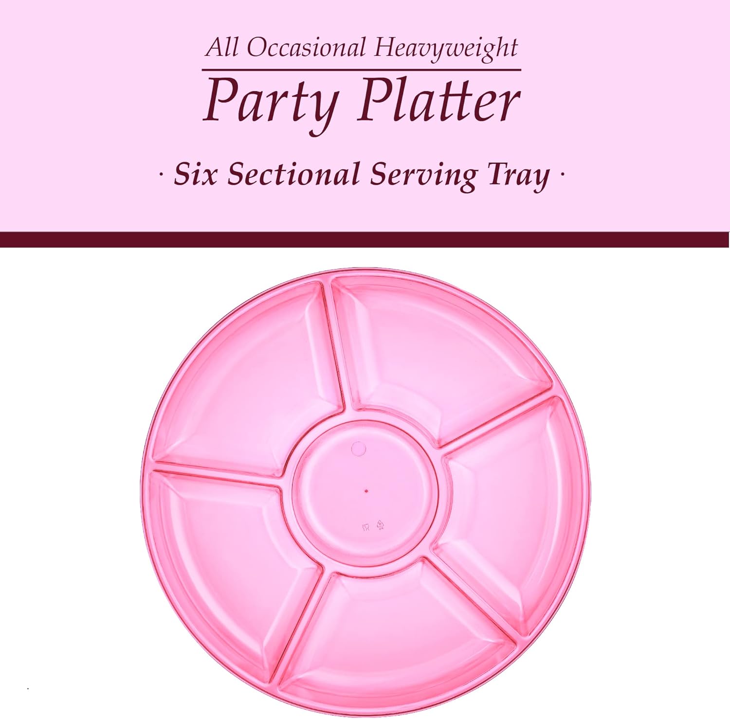Plasticpro 6 Sectional Round Plastic Serving Tray/Platters Pink Pack of 8