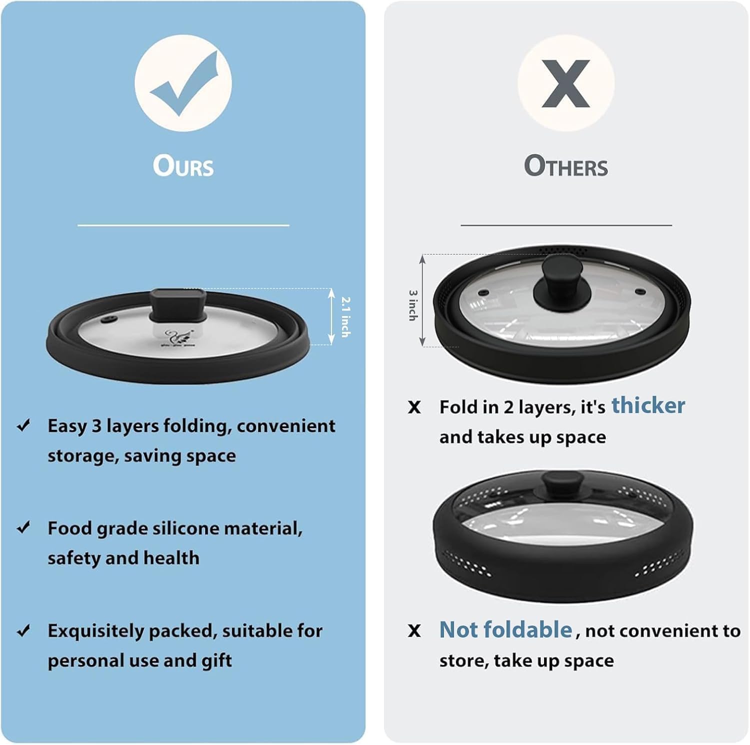 - 【ANTI-SCALD HANDLE】: Splatter Guard Lid with Easy Grip Silicone Handle Knob, 100% Tempered Glass, 100% Food Grade, BPA Free and Dishwasher Safe, It can also be used as a common pot cover, Convenient multi-purpose pot cover.