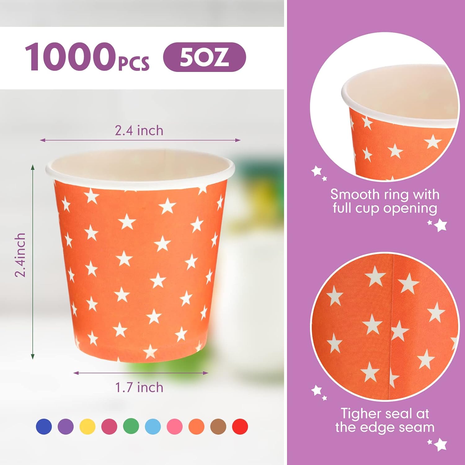 Thenshop 1000 Pack 5oz Paper Cups, Multicolor Small Disposable Cups, Hot/Cold Beverage Drinking Mouthwash for Parties, Picnic, Travel, Barbecues and Event, Star Style