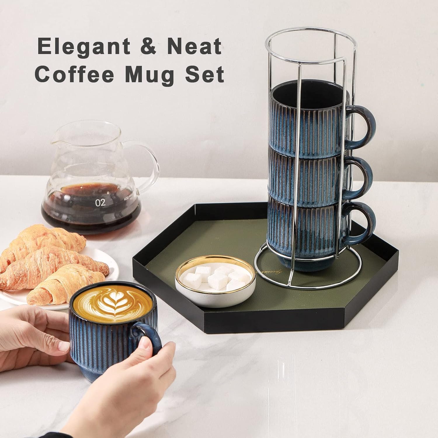 - Space Saving Metal Latte Cup Stand: Save a large area of counter by stacking cup neatly on the solid metal coffee cup rack, making the most of limited space to keep your room tidy and organized for mug set of 4