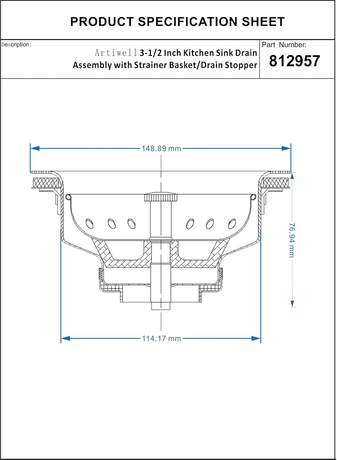 - UNIVERSAL SIZE: Fits 3-1/2 inch sink opening, detachable parts. Please measure the size of the kitchen sink drain before purchasing the kitchen drain assembly.