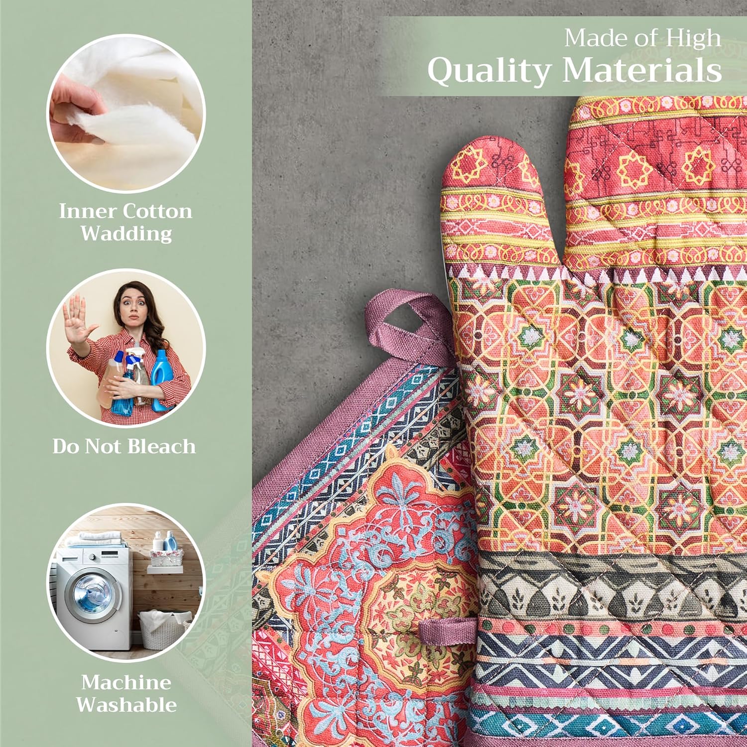 - Premium Quality: Crafted from quilted 100% cotton, this heat resistant oven mitt and pot holder set offers comfort, flexibility, and protection from hot cookware. Ideal cotton oven mitts for daily kitchen use and cooking safety