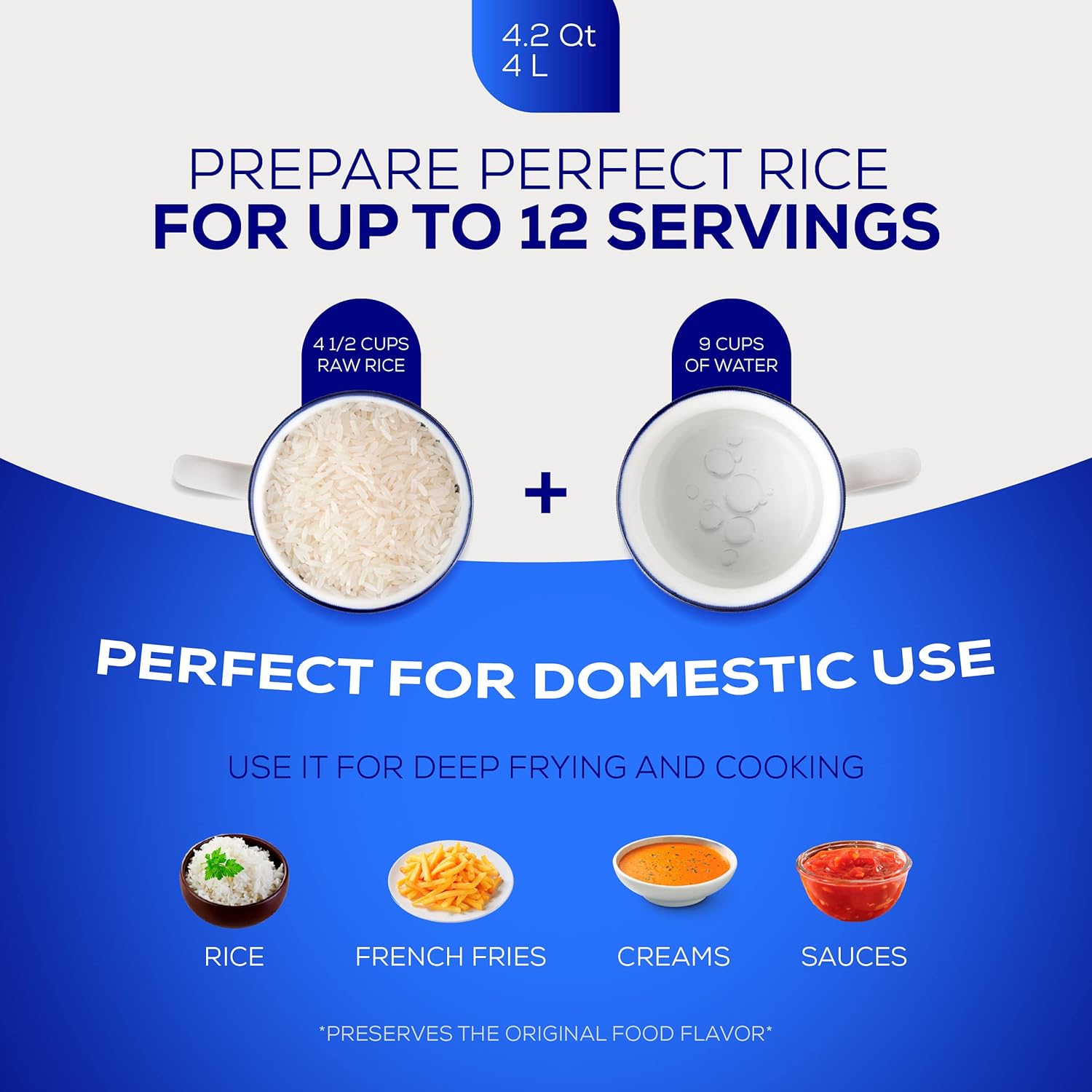 - Size : 4.2 Quart - 12 Cups