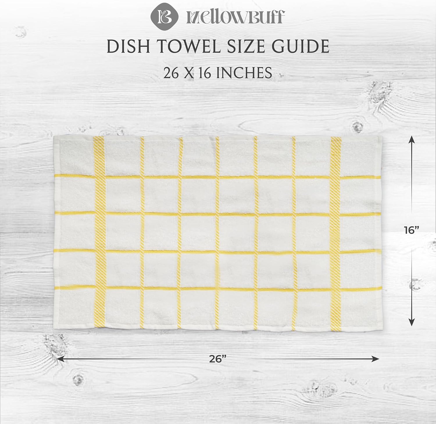 - Mellow buff dishcloths and dishtowels are made of 100% cotton with supreme quality and exquisite workmanship. Designs are simple, perfect size and it will give the feeling of being home by co-ordinating with most kitchen decor.