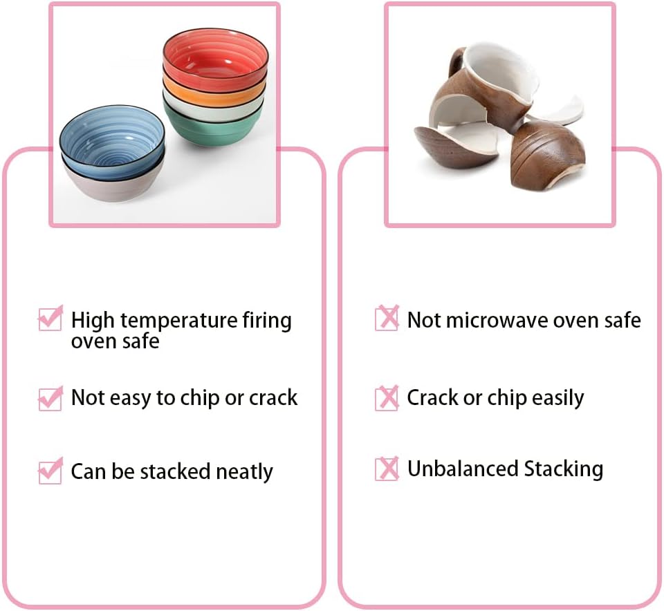- Save Space: Our cereal bowls are stackable, so you won't waste your kitchen space and say goodbye to messy cupboard space. Stable and not prone to tipping, these cereal bowls are stain-resistant and easy to clean.Double-insulated Rim, insulating heat & standing up to some bumps and drops.