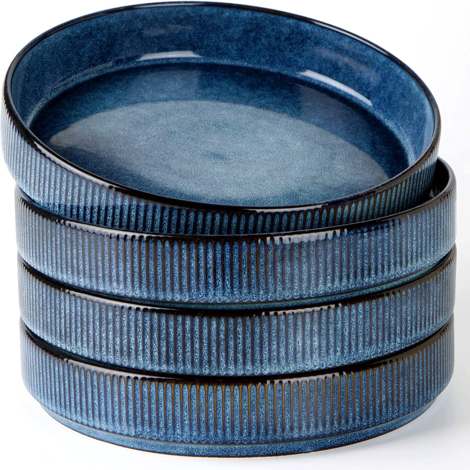 famiware Star 8.25" Pasta Bowls, Large Dinner Bowls Set of 4, Salad Bowl Plates, Shallow Bowls for Eating, Nebulas Blue