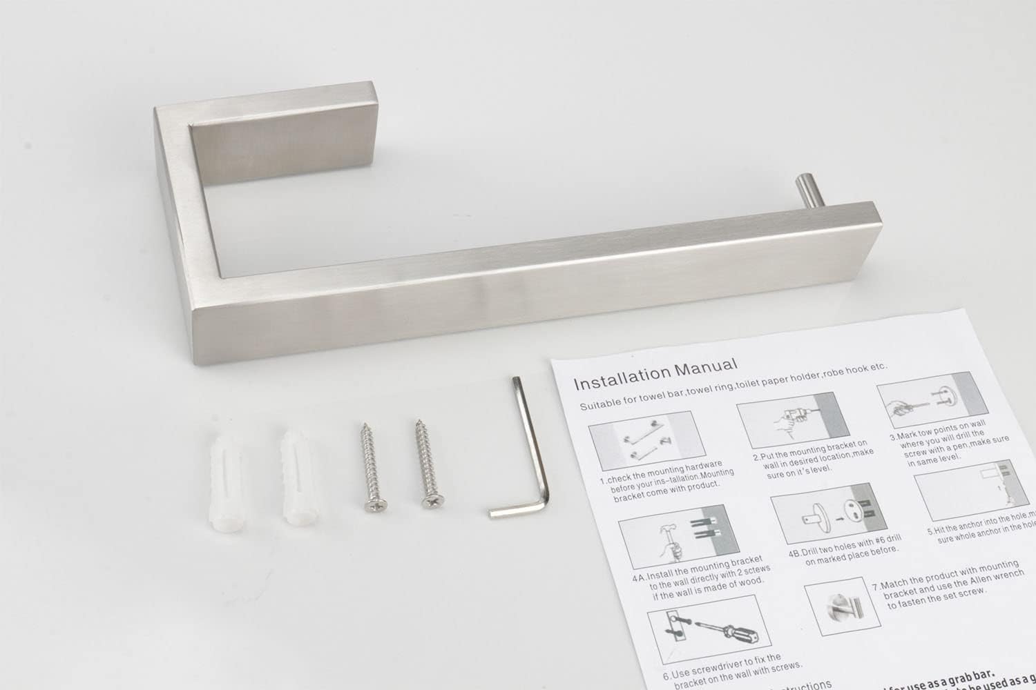 - PREMIUM 304 THICKEN MATERIAL: Very heavy duty 9IN hand towel holder, it makes of 304 stainless steel thicken material brushed nickel finished, Never rust. We care about every details, The welding part of the product is polished by multiple processes, making it seamless and smooth will not hurt your goods
