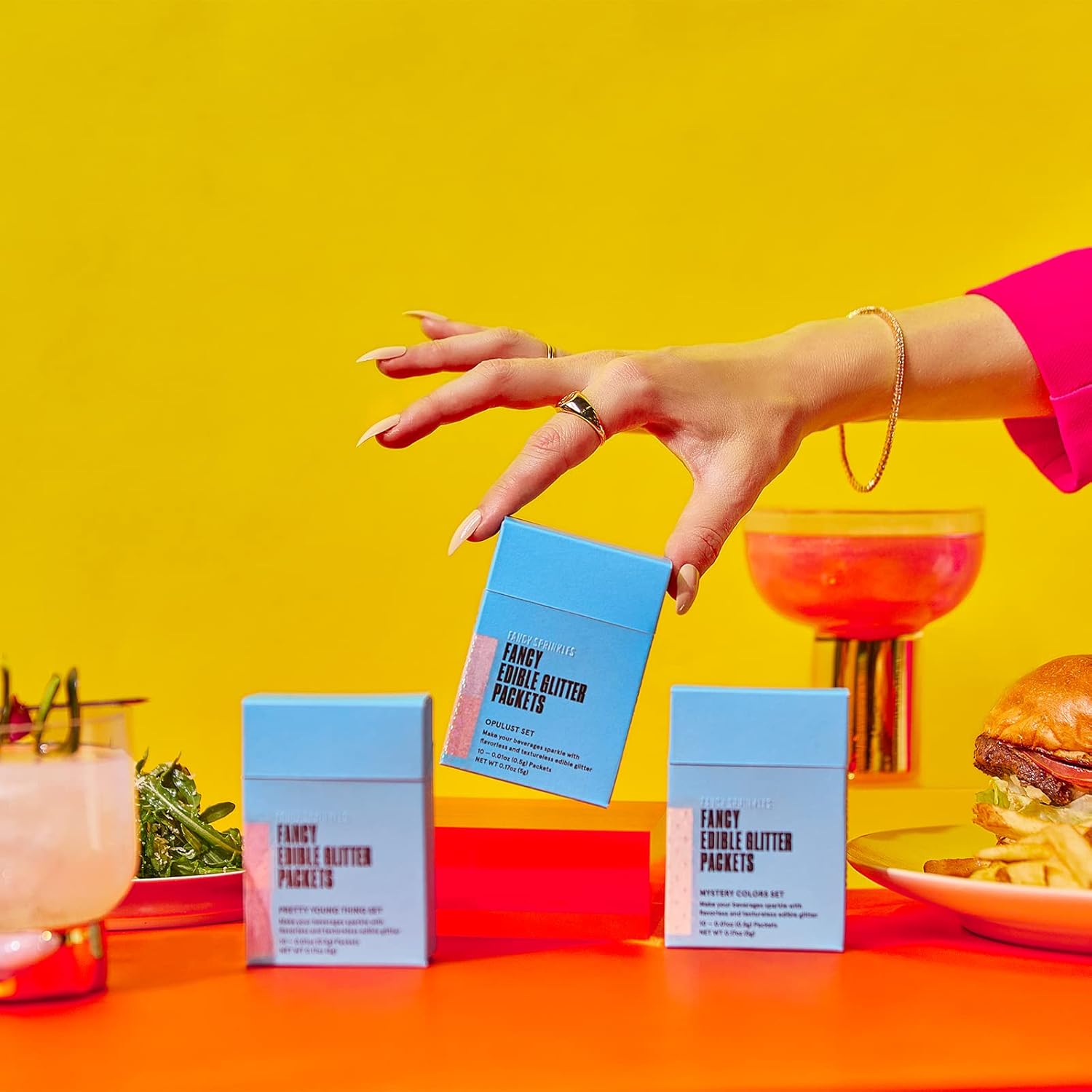 - Effortlessly transform any moment—and your drink—by adding FANCY SPRINKLES Fancy Edible Glitter Packets to beverages, bubbly, and cocktails!