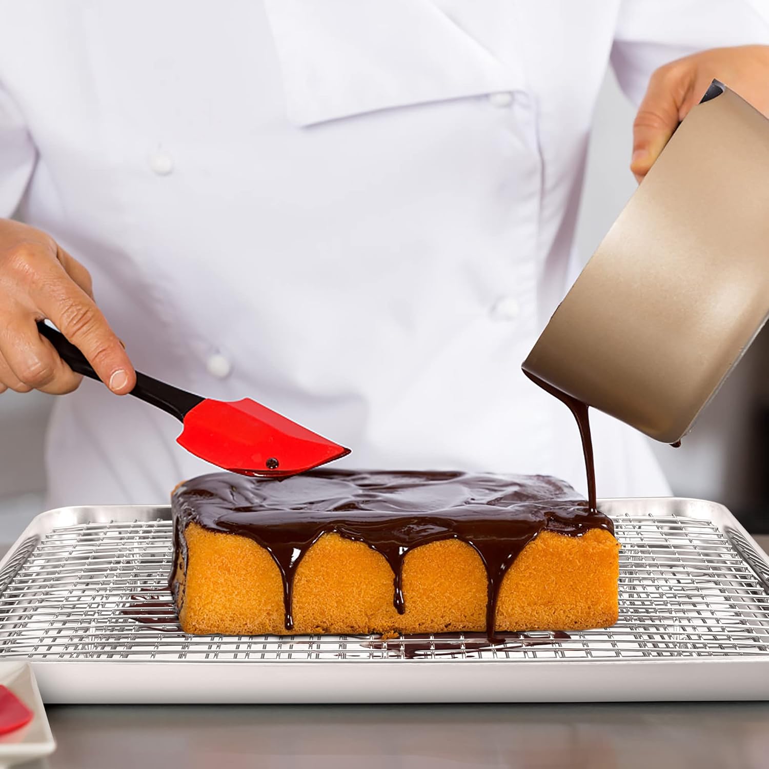 - Cooking Evenly & Quickly: The cooking rack with 0.6β x 0.6β grid spacing let grease drip through while avoiding the food from falling off, 0.75 inch elevated feet raised the entire rack up, Helps create proper air circulation for evenly baking and quickly cooling, Heavy gauge wires are able to withstand both hot and cold temperatures, Perfect for all types of use