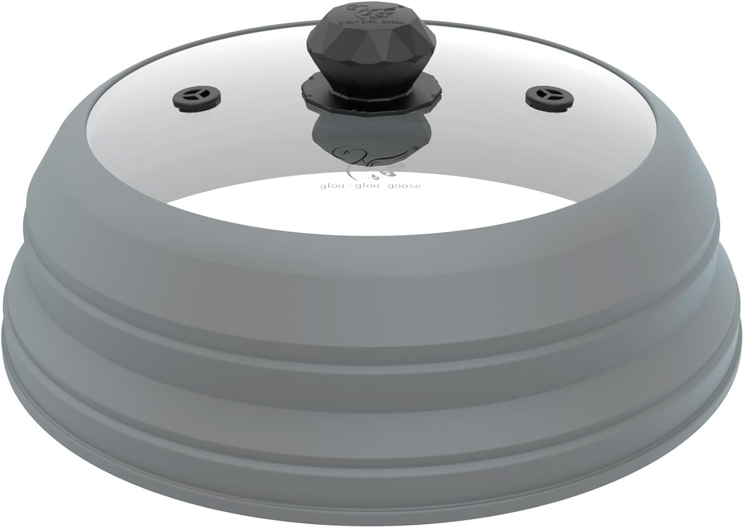 Microwave Splatter Cover Vented Glass Cover Splatter Guard Lid with Collapsible Silicone for Food as Pot Cover Plate Cover 10.8 inch for 6 7 8 9 10 inch Plate Bowl Light Grey