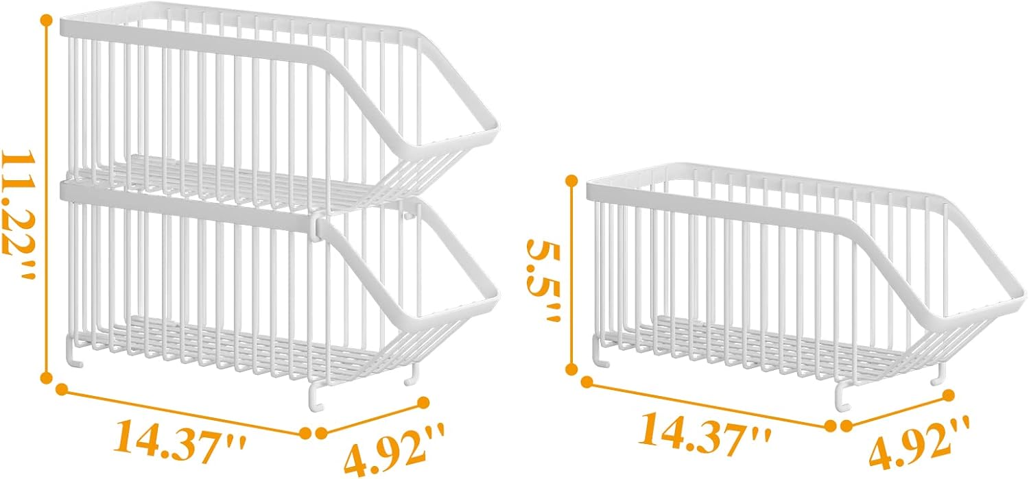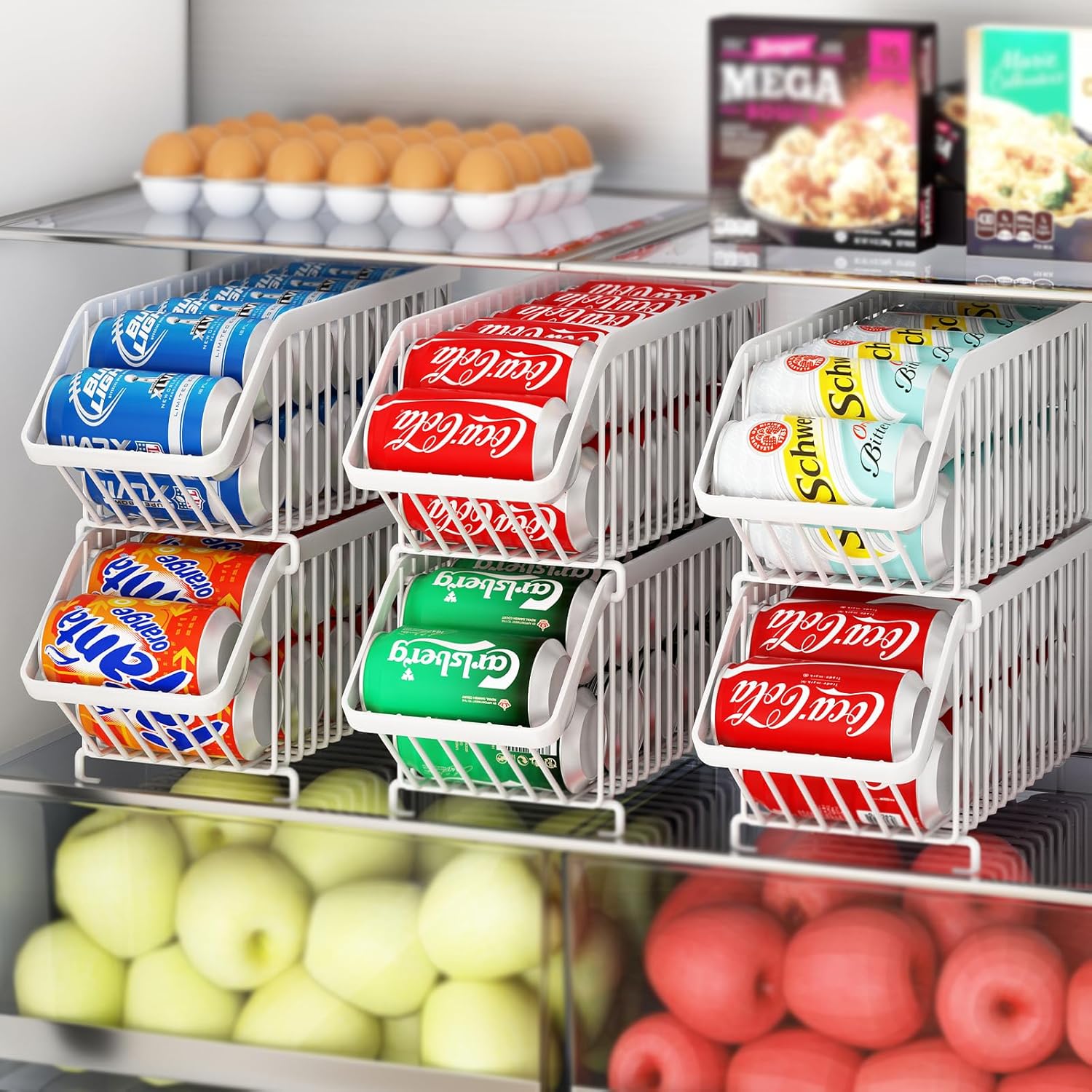 - Stackable Design: This stackable beverage soda can organizer rack was the stackable design. You can overlay 2 baskets together or use each basket alone.The stackable design maximizes storage space which ideal for organizing small or crowded kitchen spaces and keep your fridge organized