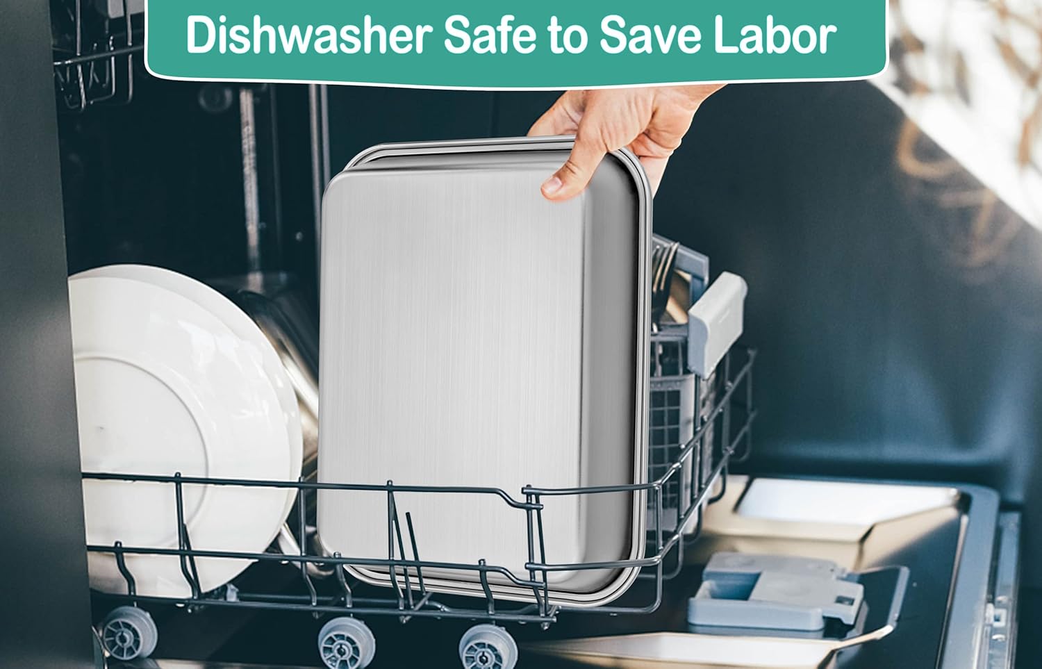- EASY CLEAN β Smooth brushed surface helps easily release food and reduces the risk of sticking on the stainless lasagna pan, Easy to clean and dishwasher safe to make cleaning is a breeze, Let you enjoy the baking time but less hassle