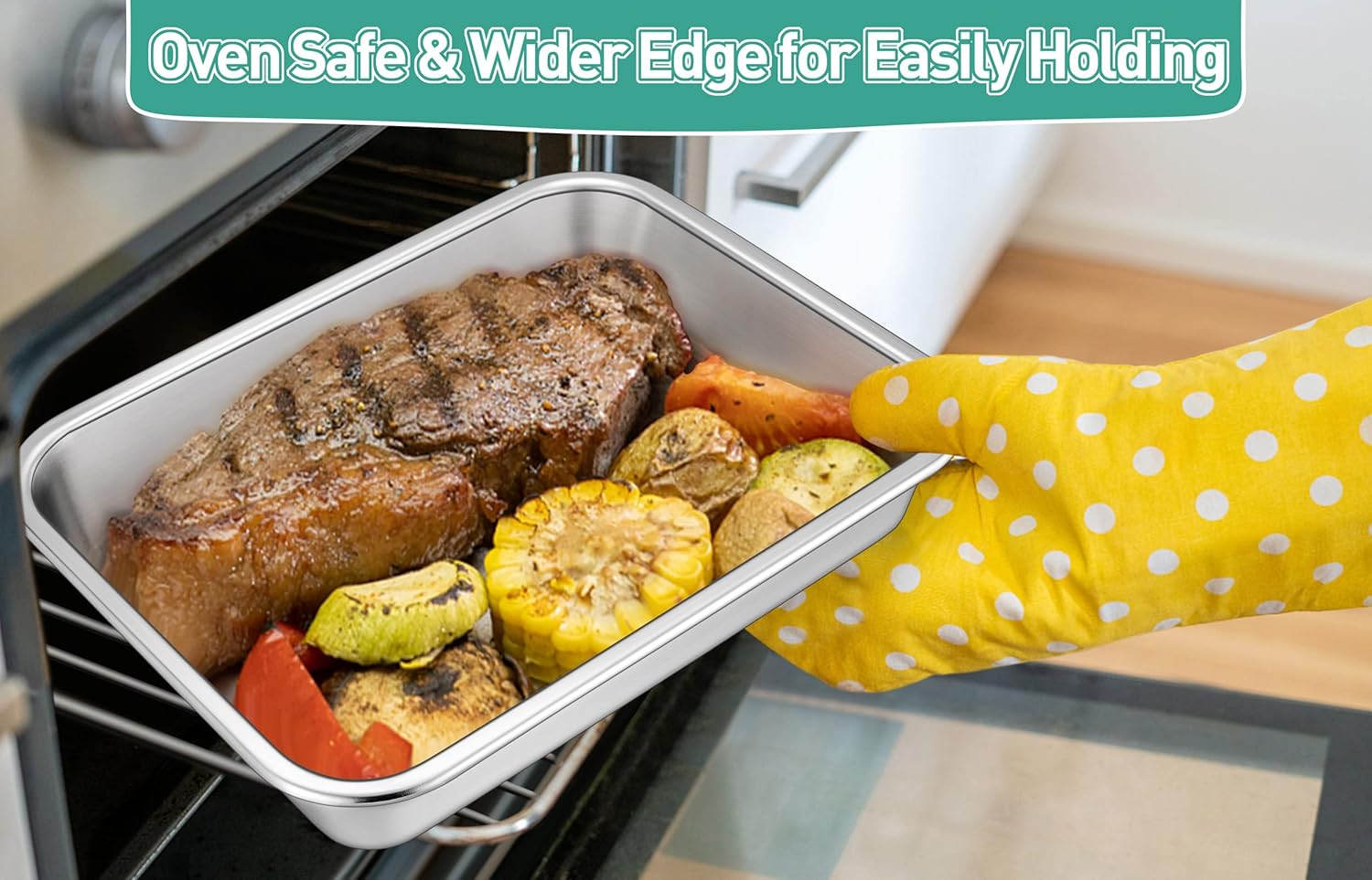 - HEALTHY MATERIAL β TeamFar rectangular cake pan set is made of pure stainless steel without any coating, Non-toxic and harmful substance leaching into your food, Safer and healthier for daily uses, Unbreakable compared to ceramic or glass lasagna dish and long lasting uses