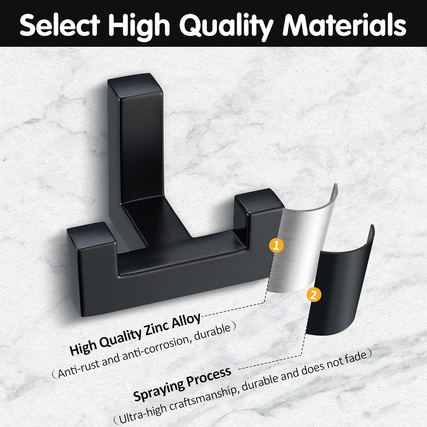 - Sturdy And Durable: This black towel hook for bathroom is made of high quality zinc alloy and can easily hold up to 40 lbs. Heavy-duty wall hooks are great for hanging coats in bedrooms, especially thick coats and backpacks.
