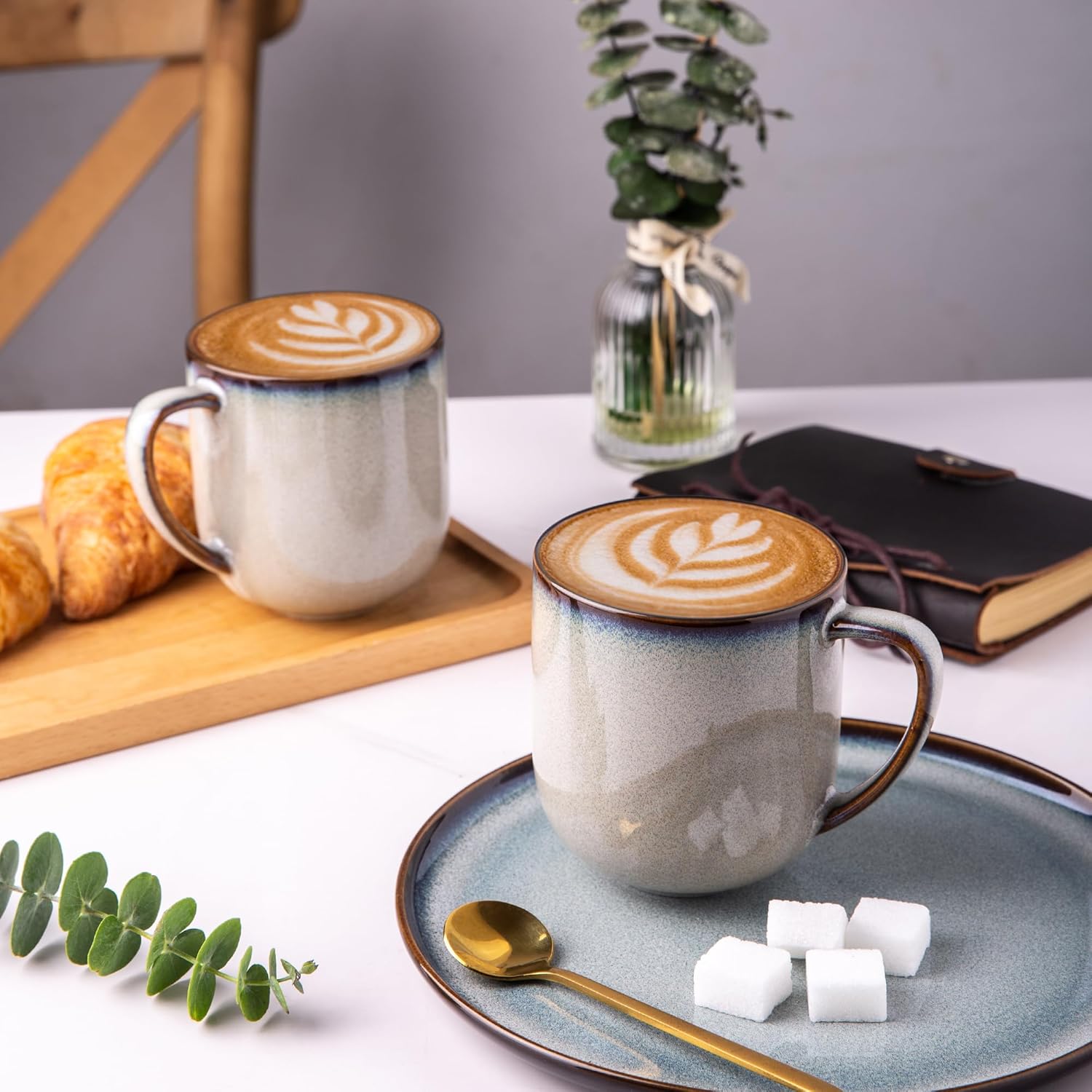 - ELEGANT AND STYLISH : it creates an alluring ambiance that exudes warmth. The eye-catching reactive glazes and rich, vivid hues not only soothe the senses but also elevate your dining experience. These ceramic mugs feature an ergonomic handle that provides a comfortable grip for your hand. The stable base ensures that the mugs are safe for daily use. With their modern design, these mugs are perfect for special occasions or for everyday use.