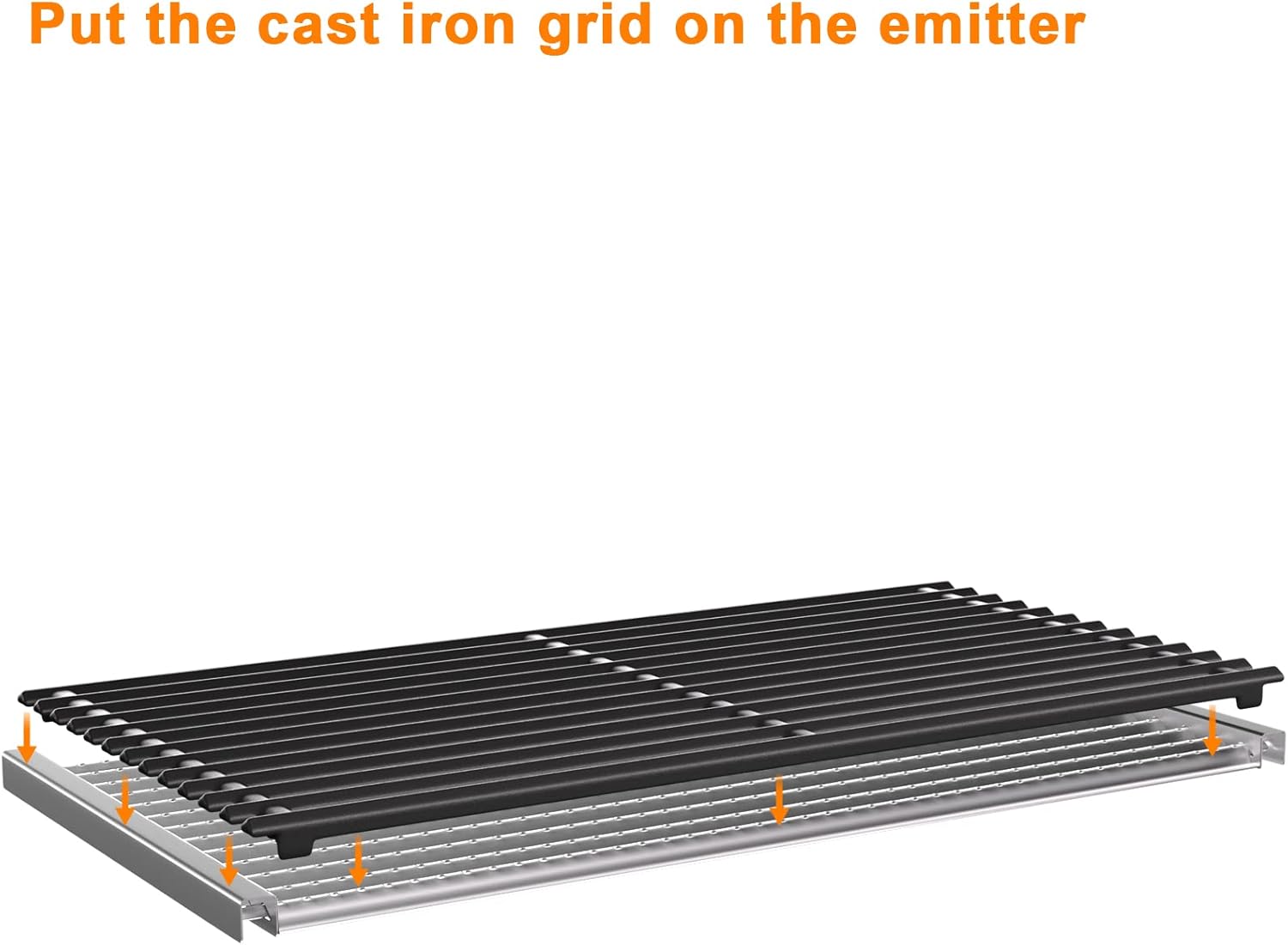 - 【High-quality】The grill grids are made from durable cast iron material,ensuring long-lasting performance and imparting a distinctive grilling flavor;The emitter plates are constructed of high-grade stainless steel, providing resistance to corrosion and high temperatures.