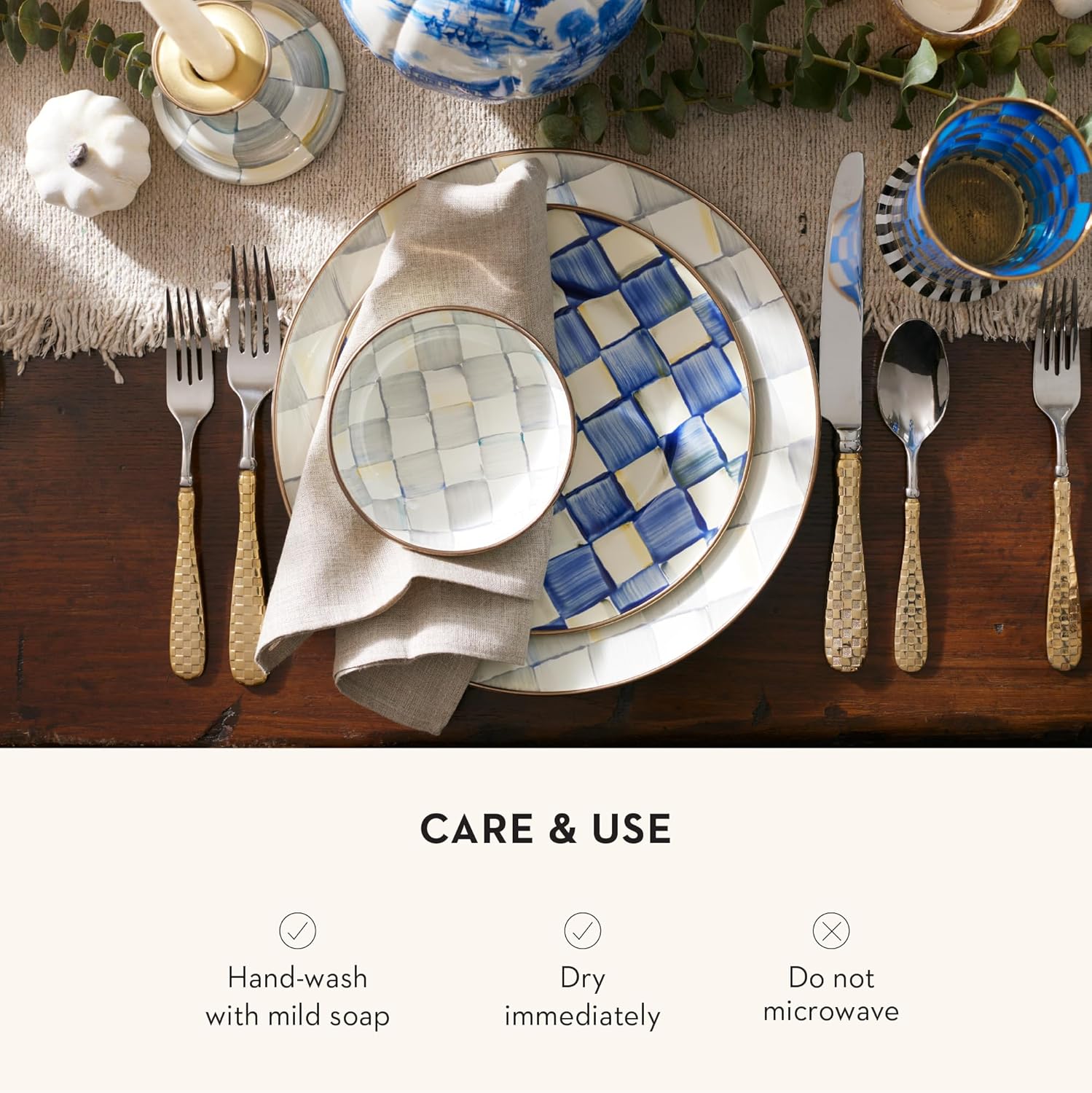 MACKENZIE-CHILDS Enamel Dipping Bowl, Small Serving Bowl for Entertaining, Gray-and-White Sterling Check
