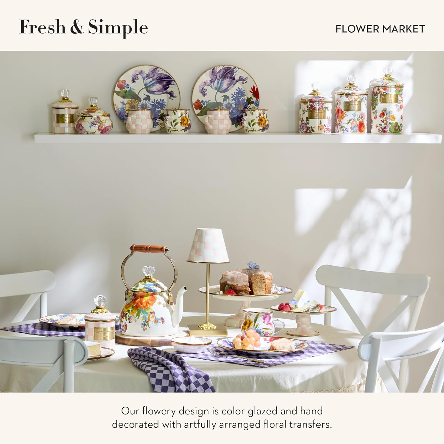 MACKENZIE-CHILDS Enamel Dipping Bowl, Small Serving Bowl for Entertaining, White Flower Market