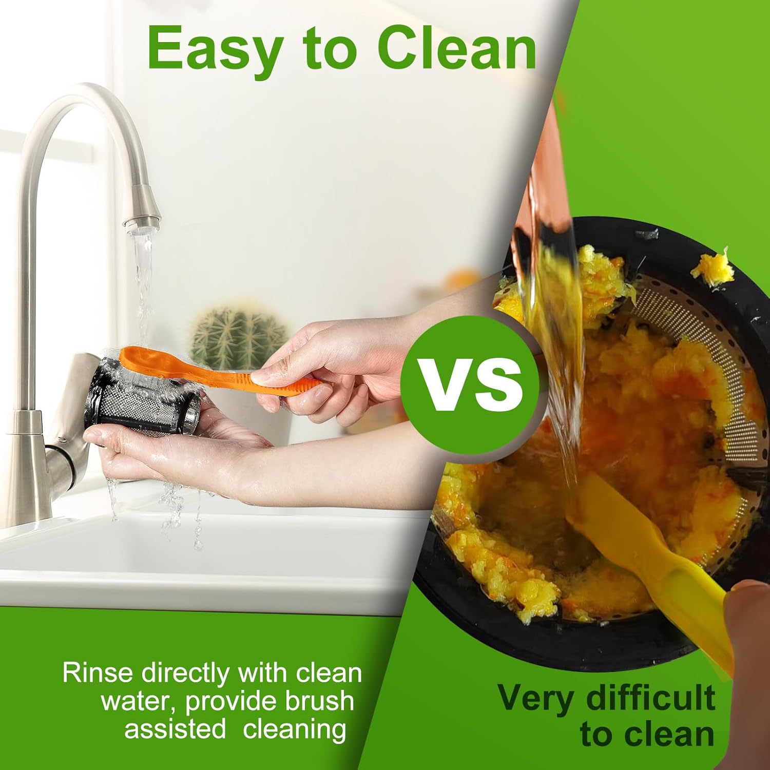- Quick & Easy to Clean: This juicer machine features a safety lock design, helps you easy to assemble and disassemble in minutes. Has REVERSE FUNCTION to avoid stuck and helps you to clean. All detachable parts are made of high quality Food Grade anti-oxidation materials, easy cleaning with a bonus brush or can be safely cleaned in your dishwasher.