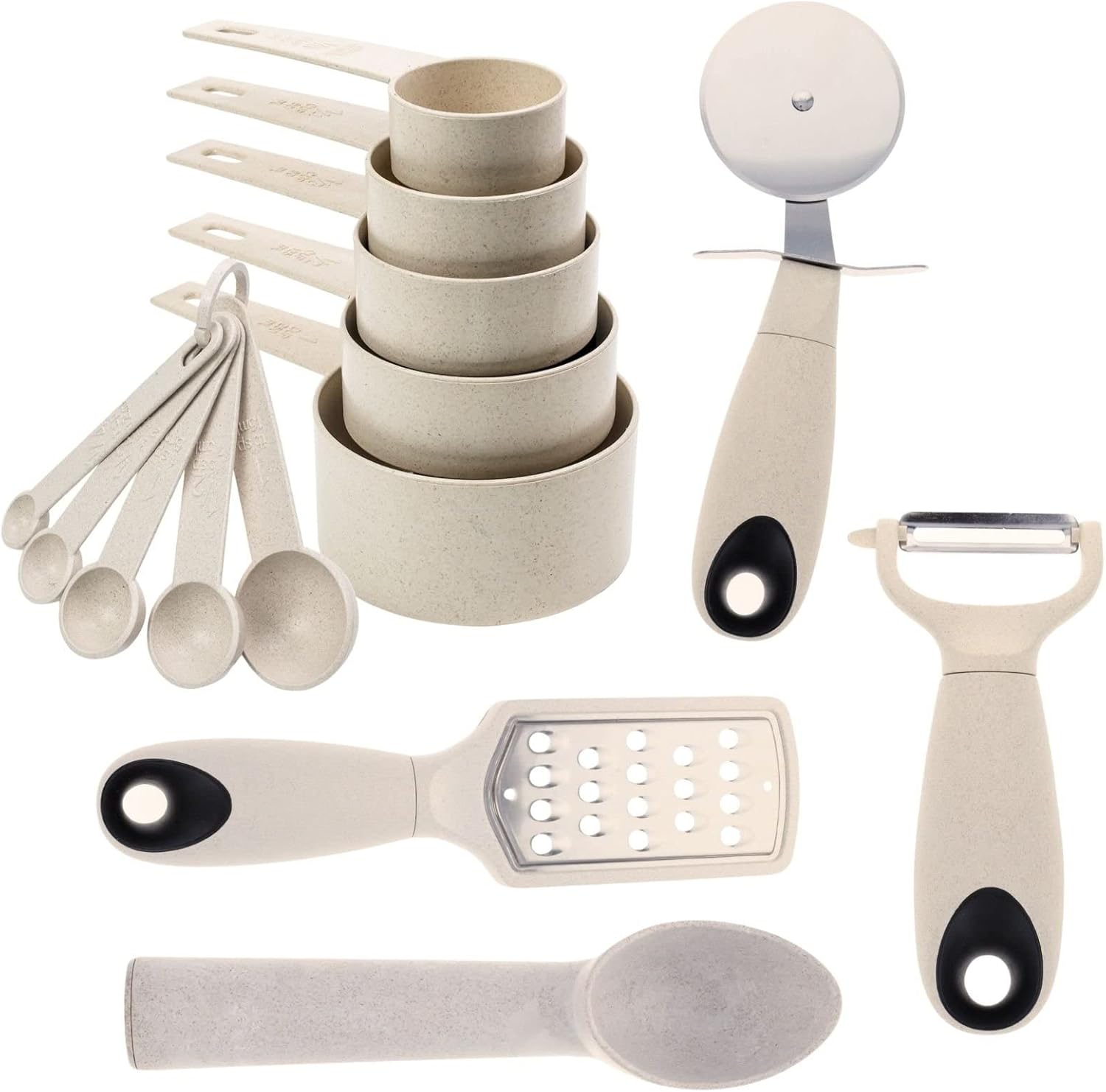 Beille 14pc Wheat Straw Kitchen Utensil Set Peeler Cutter Grater Spoons and Cups
