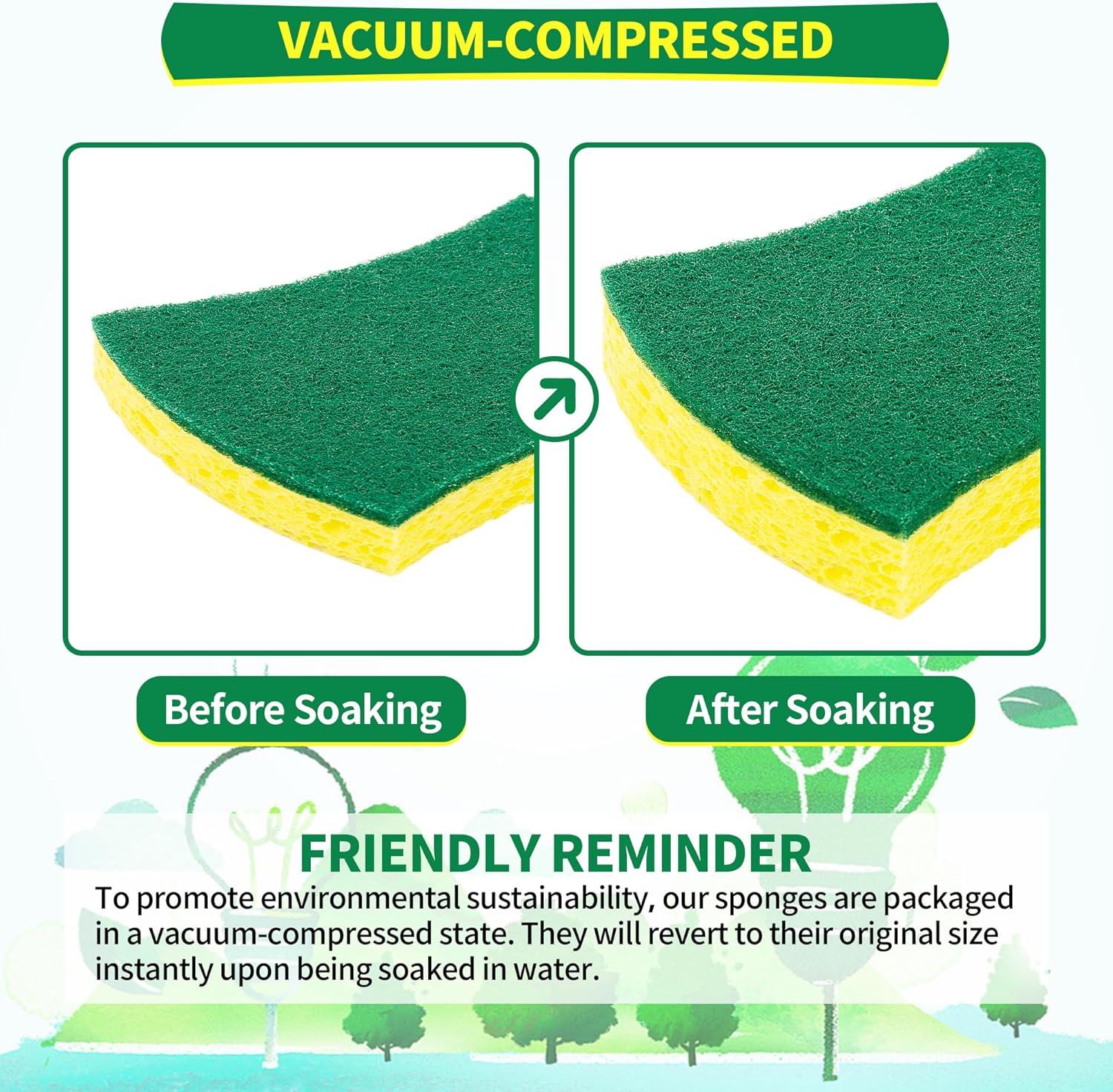 - Long-lasting Durability & Cost-effective: Unlike other sponges, these scrub sponges are built to last. Made with high-tech materials that are carefully selected, they can withstand repeated use without falling apart or losing their effectiveness. With proper care and maintenance, these kitchen sponges can last for months, helping you save money and reduce waste in the long run.