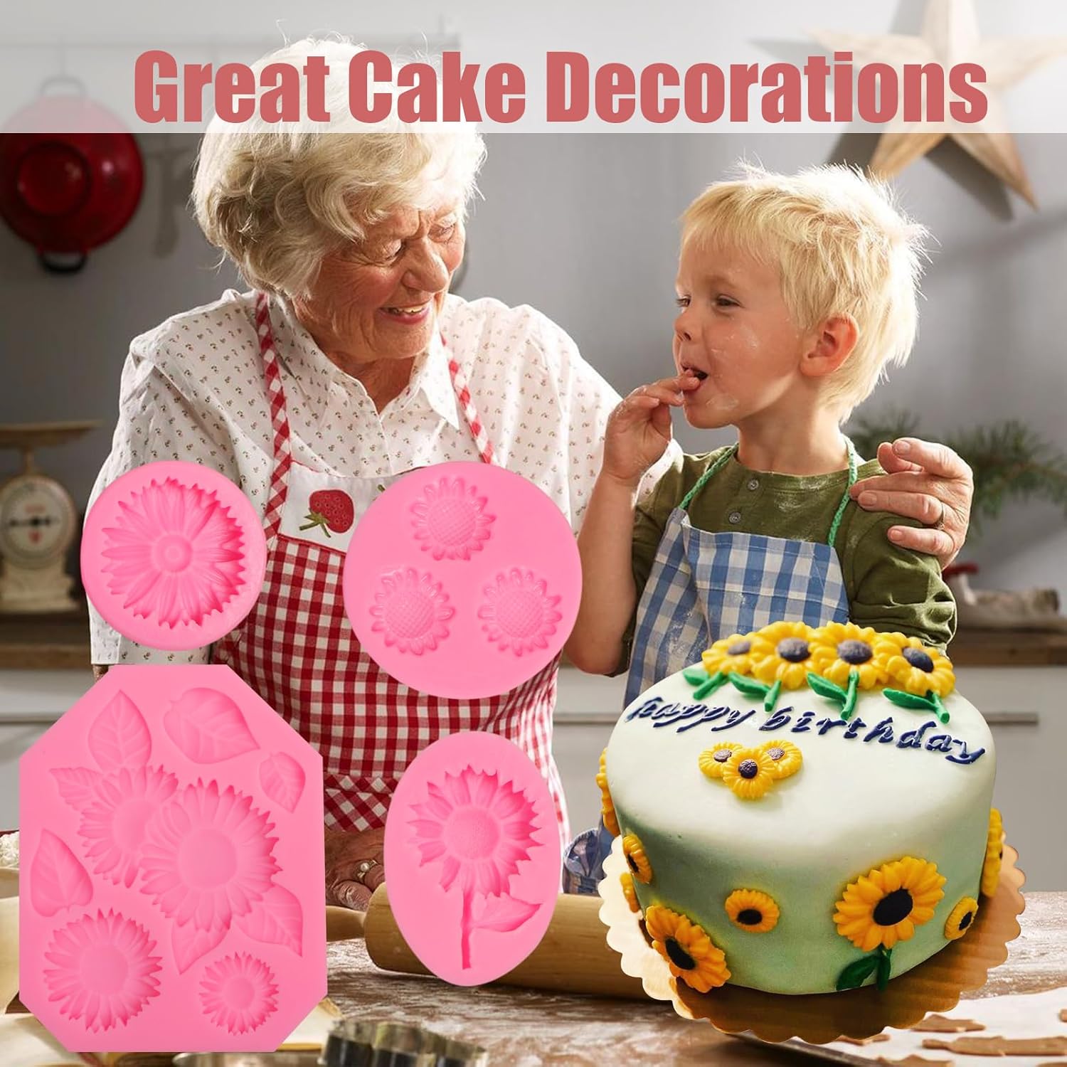 - [APPLICATION]: Our Sunflower Fondant Molds are Suitable for Making Chocolate, Cake Decoration, Cupcake Topper, Cake Pop, and Popsicles. Can also Make Polymer Clay Resin Crafts. You Can Make a Sunflower Themed Cake for Your Kid's Birthday Party.