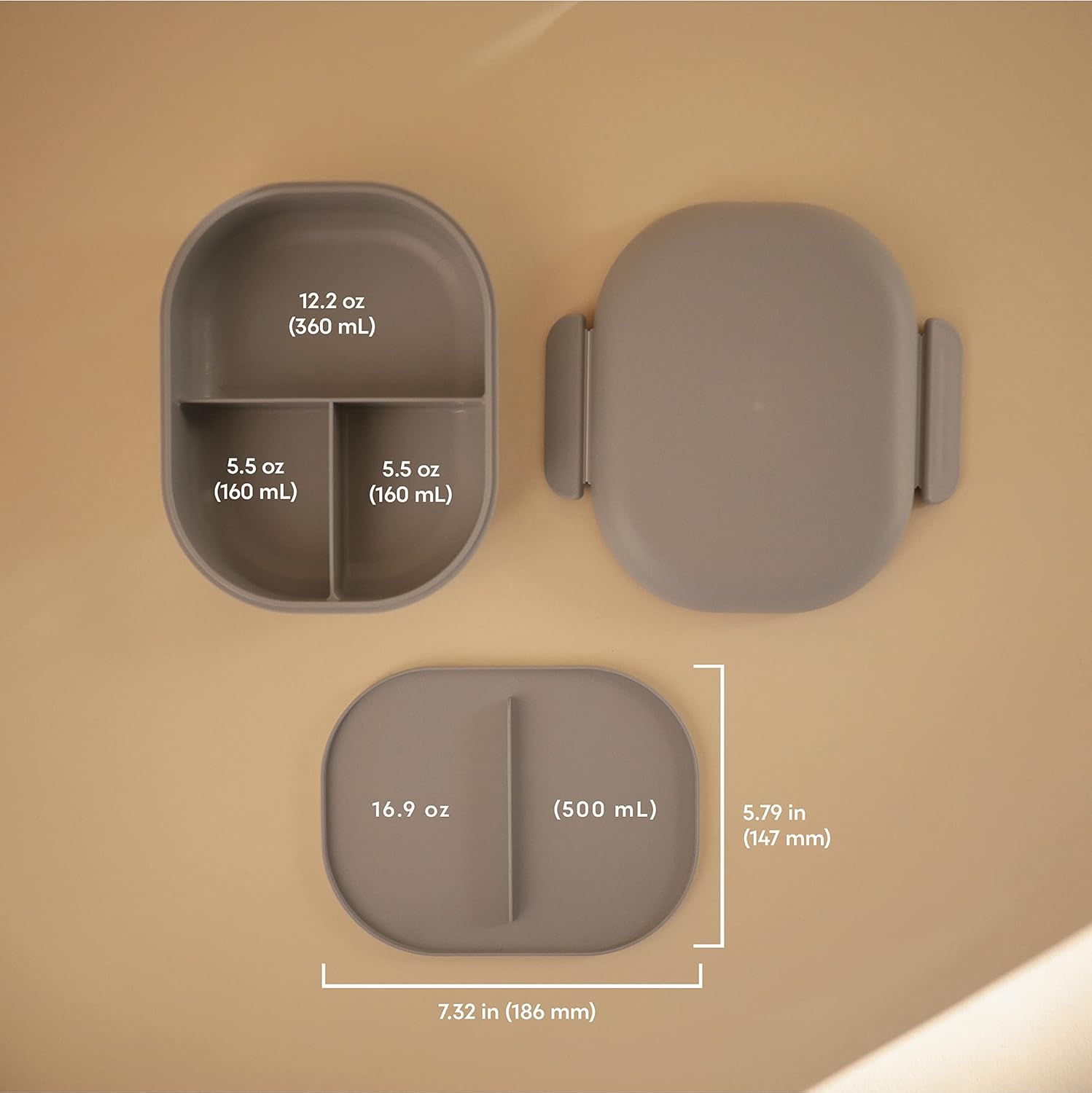 mushie Kids Bento Lunch Box | 3-Compartment & Removable Divider + Fork & Spoon Utensils | Great For Meals, School, Snacks On-the-Go | Dishwasher Safe (Cloud)