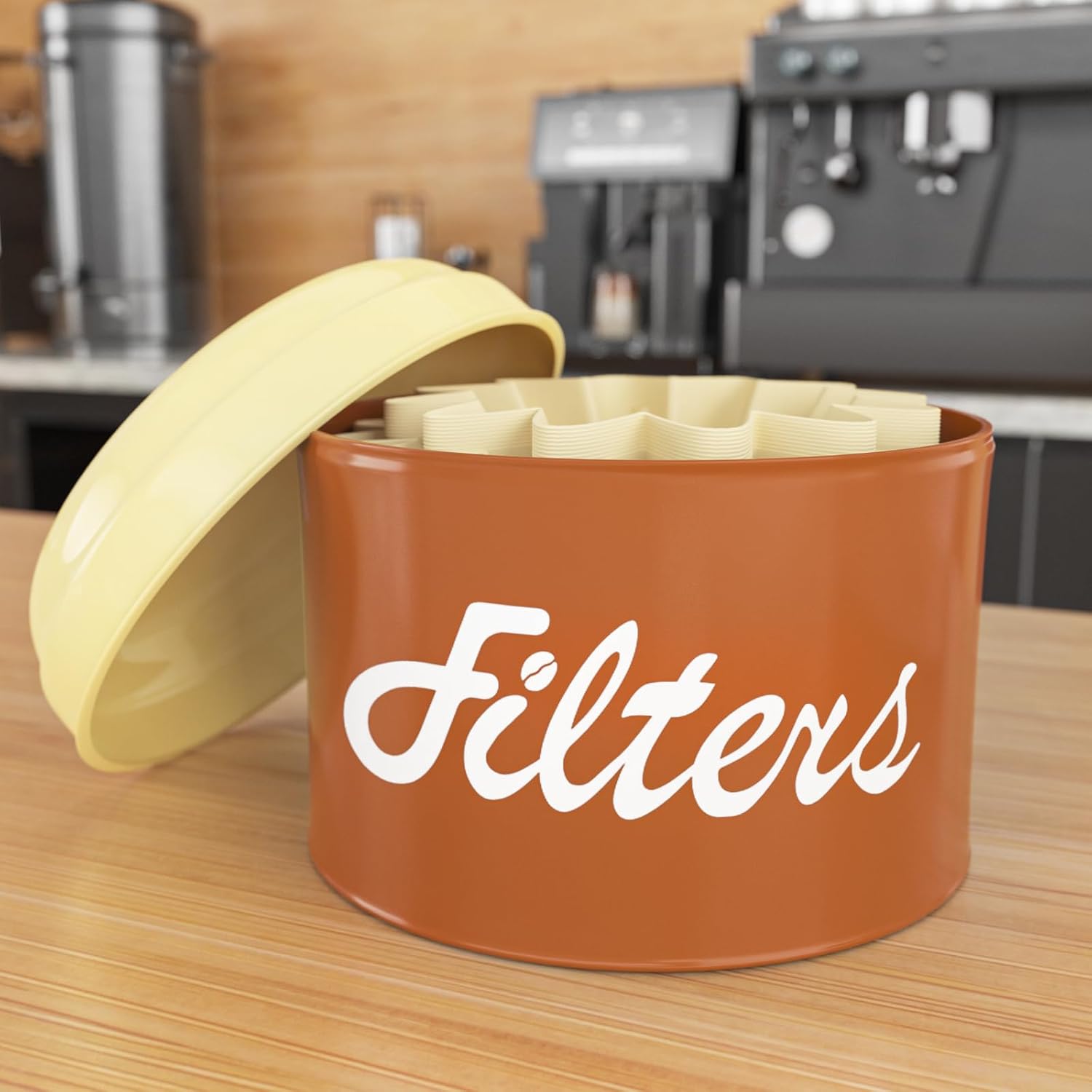 - 【BASKET COFFEE FILTER CONTAINER】 Our coffee filter holder with lid is capable of holding various sizes of round basket-shaped pleated filters commonly found in the market, a sizeable internal capacity is enough to store your daily coffee filters, it is a perfect addition to your coffee bar decor