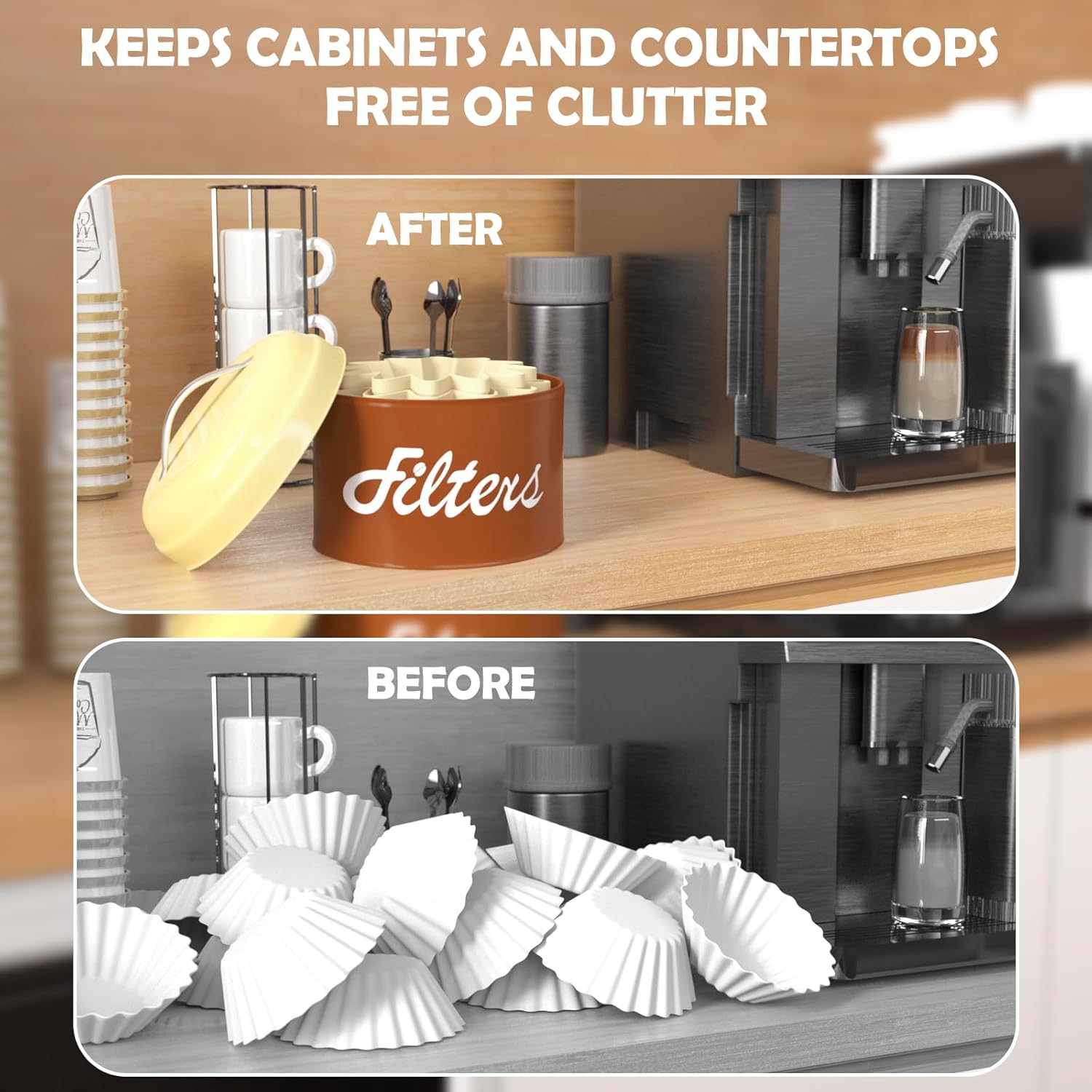 - 【ALL-ROUND PROTECTION COFFEE FILTER】 Our coffee filter organizer is equipped with a lid, which can keep dust and other nastiest from getting in your coffee filters. Particularly pet hair, and prolong the service life of the coffee filter. Created to make your home a neater and tidy place to be, put this coffee bar accessory in your cart today!