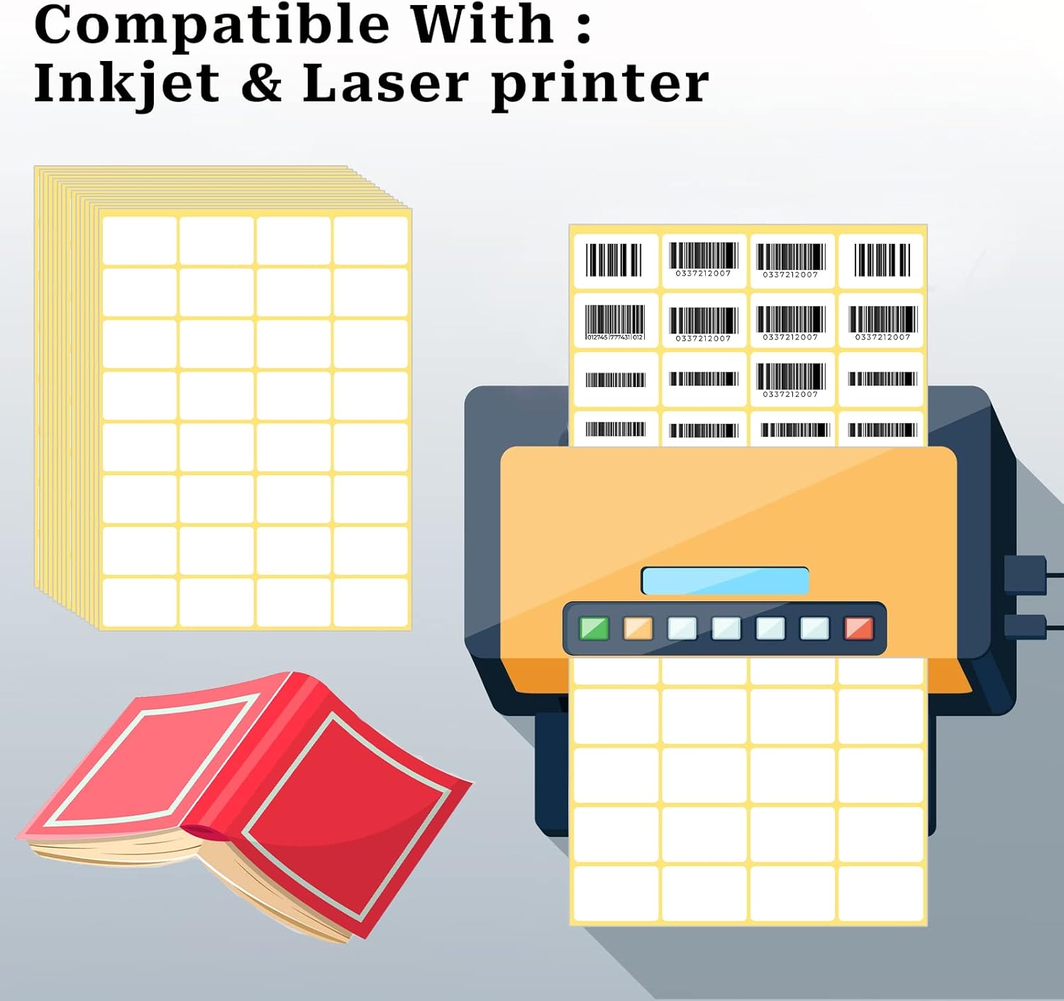 - PRINTER LABELS β Small printing labels are compatible with inkjet and laser printers. Simply place label sheet in paper tray, print, peel backing, and press down to stick to any flat surface.