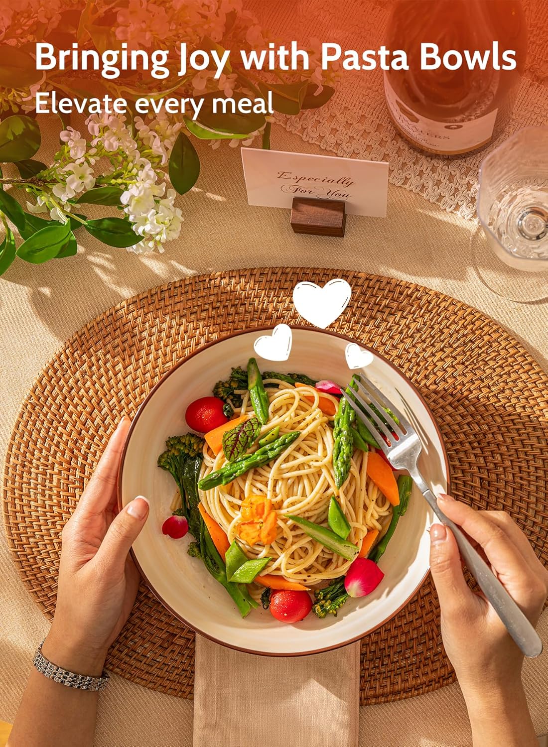 - Enjoy Delicious Food Safely and Healthily: Introducing our Pasta Bowls, crafted with a lead-free, all-natural glaze. Safety is paramount, and with our bowls, you can dine worry-free, knowing harmful substances are kept at bay. Whether it's a cozy family dinner or an elegant soirรฉe, these bowls add a touch of health and nature to your dining experience.