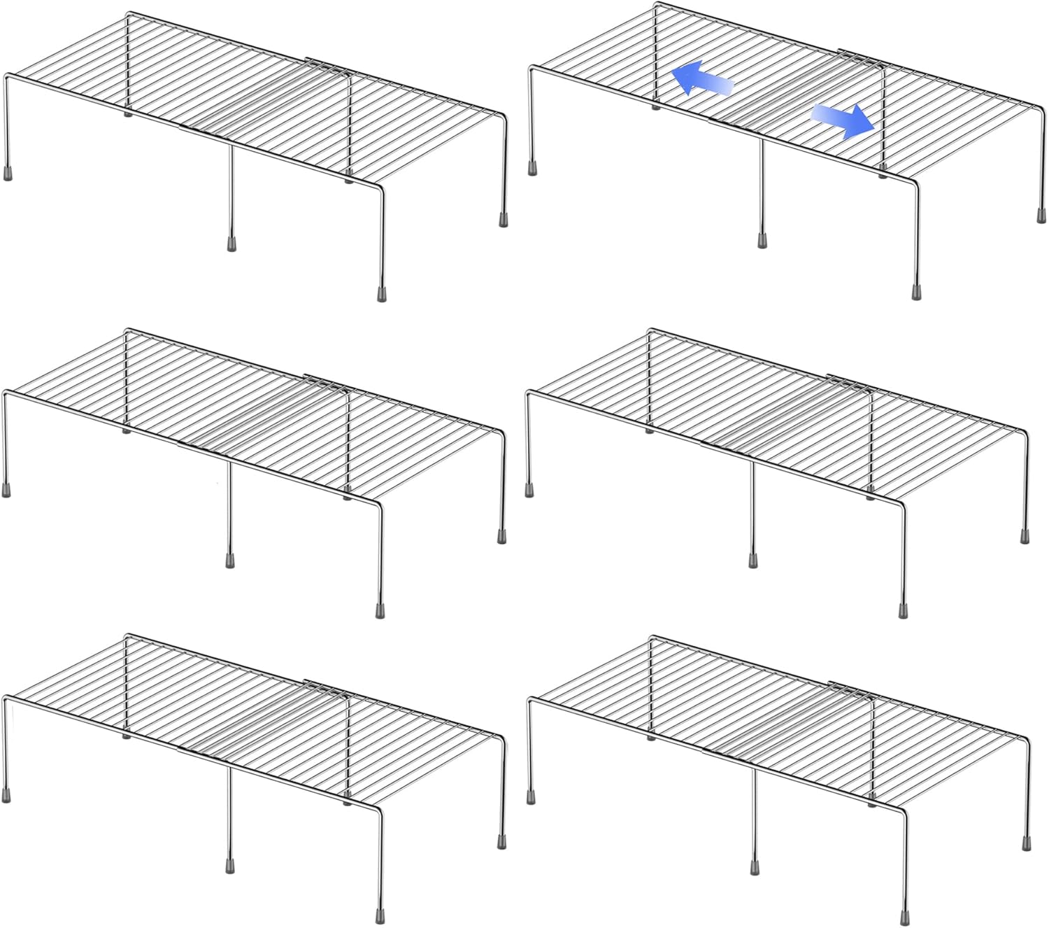 Redrubbit Cabinet Storage Shelf Rack, Expandable Metal Rustproof Kitchen Counter and Cabinet Shelf, Storage Rack Organizer Space Saver for Kitchen, Fridge, Cabinet, Bathroom, Chrome, Set of 6