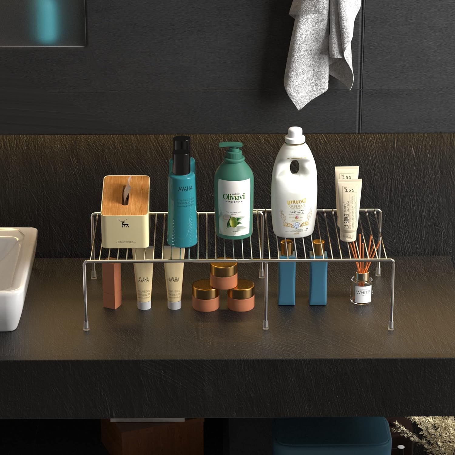 - FUNCTIONAL STORAGE:Perfect shelf to keep everything organized in cabinet, pantry, cupboard, closet, drawer or counter top in kitchen, bathroom, bedroom and under the sink. With the mesh design board, it can be a drying rack for dishes, bottles, plates.