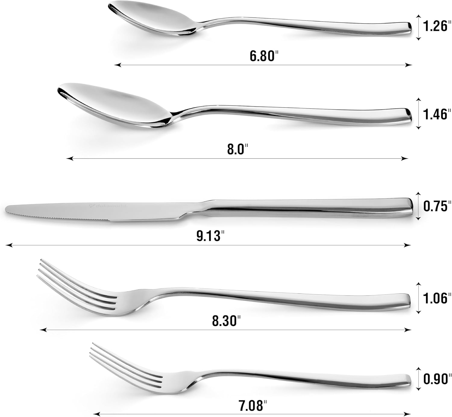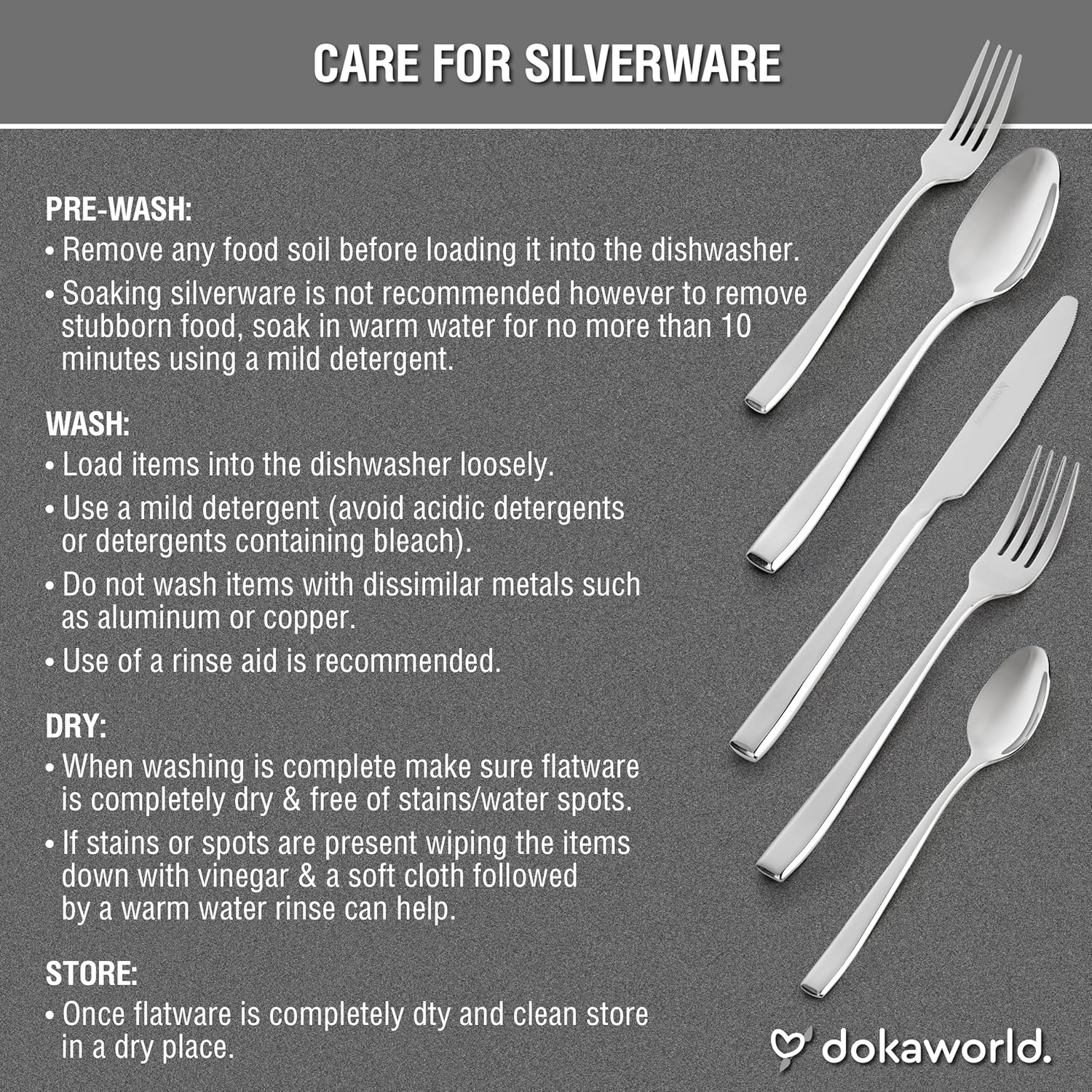 - EASY MAINTENANCE: this cutlery set is 100% dishwasher safe. Even after numerous uses and washings, it wonβt lose its mirror-like polish