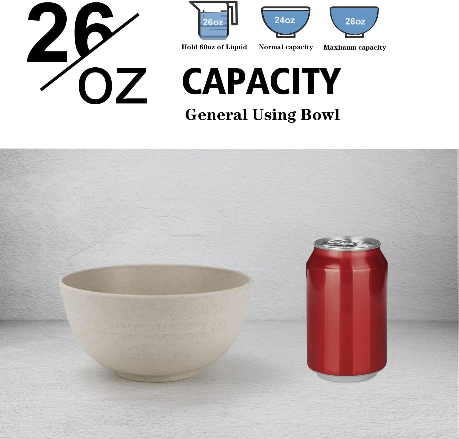 Wheat Straw Bowl Sets,8 PCS Unbreakable Cereal Bowls 26 OZ,Microwave and Dishwasher Safe Bowls, Kitchen Bowl suitable for cereal,salad,snack and soup (Beige)